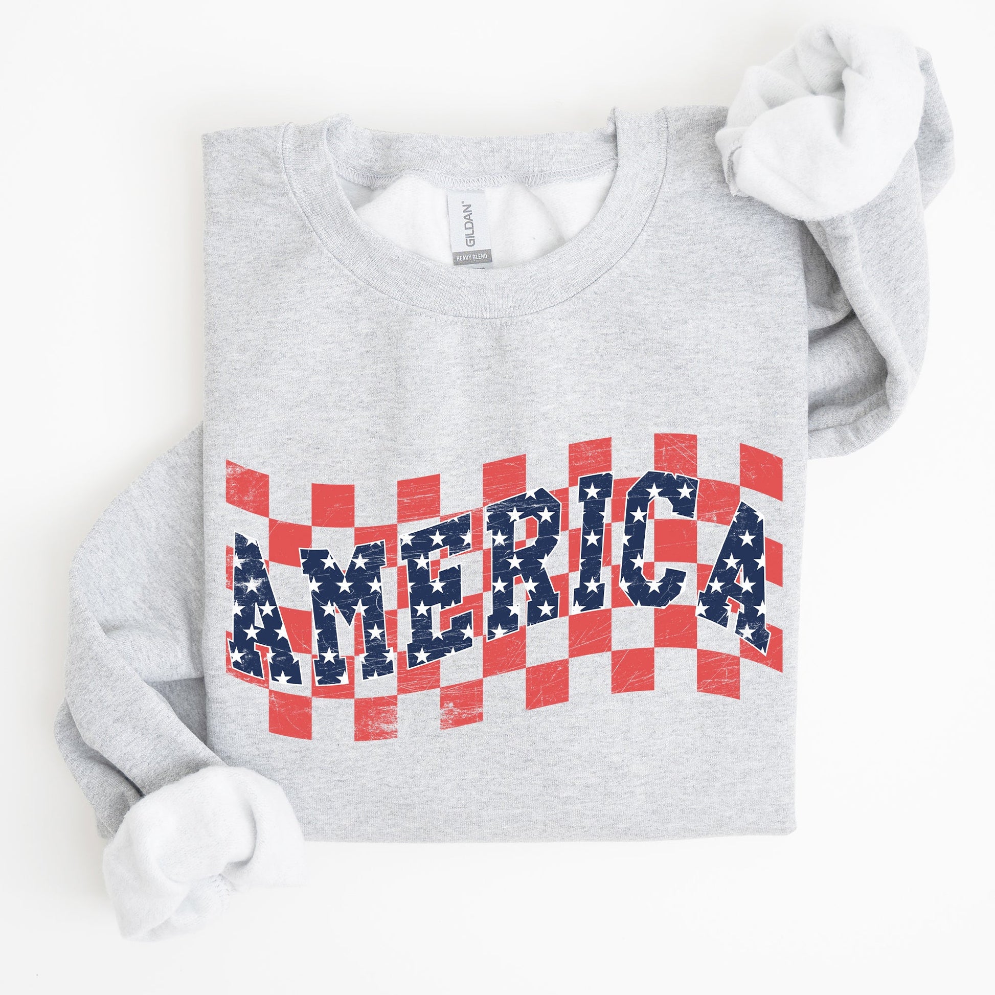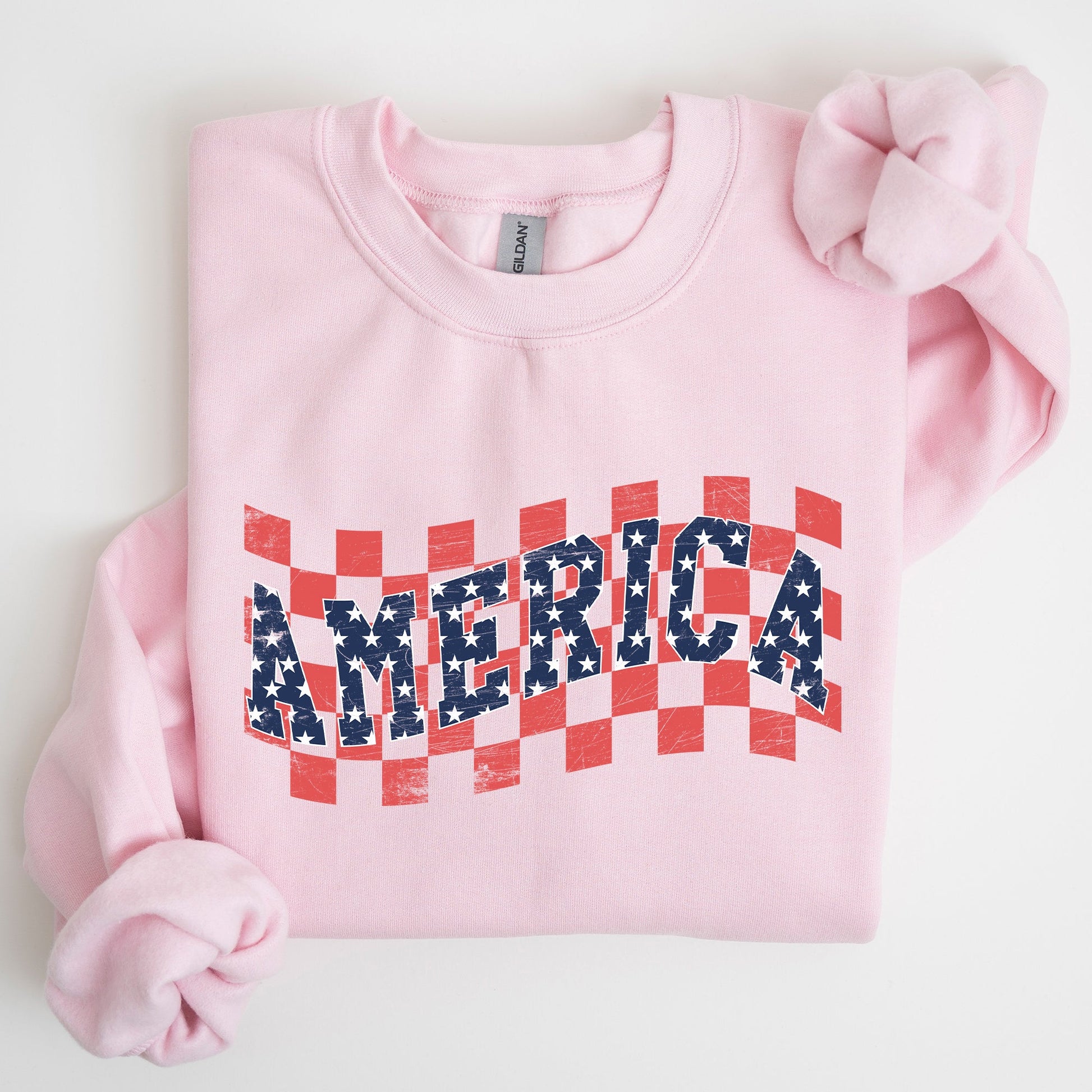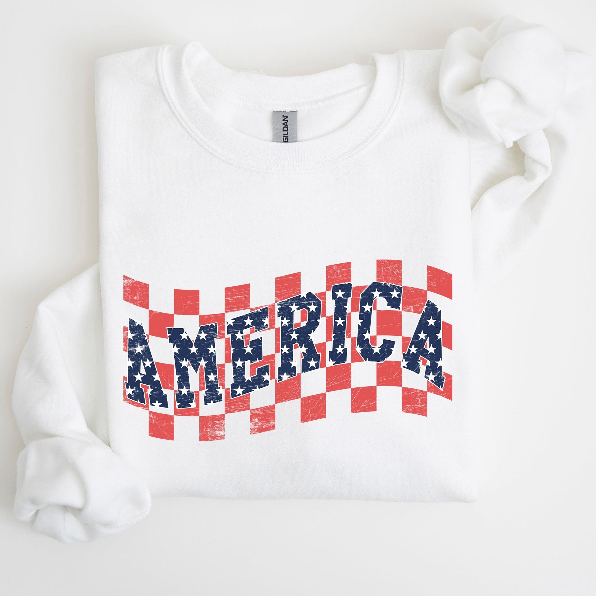 America, Retro, Patriotic USA Checkered,Vintage Sweatshirt