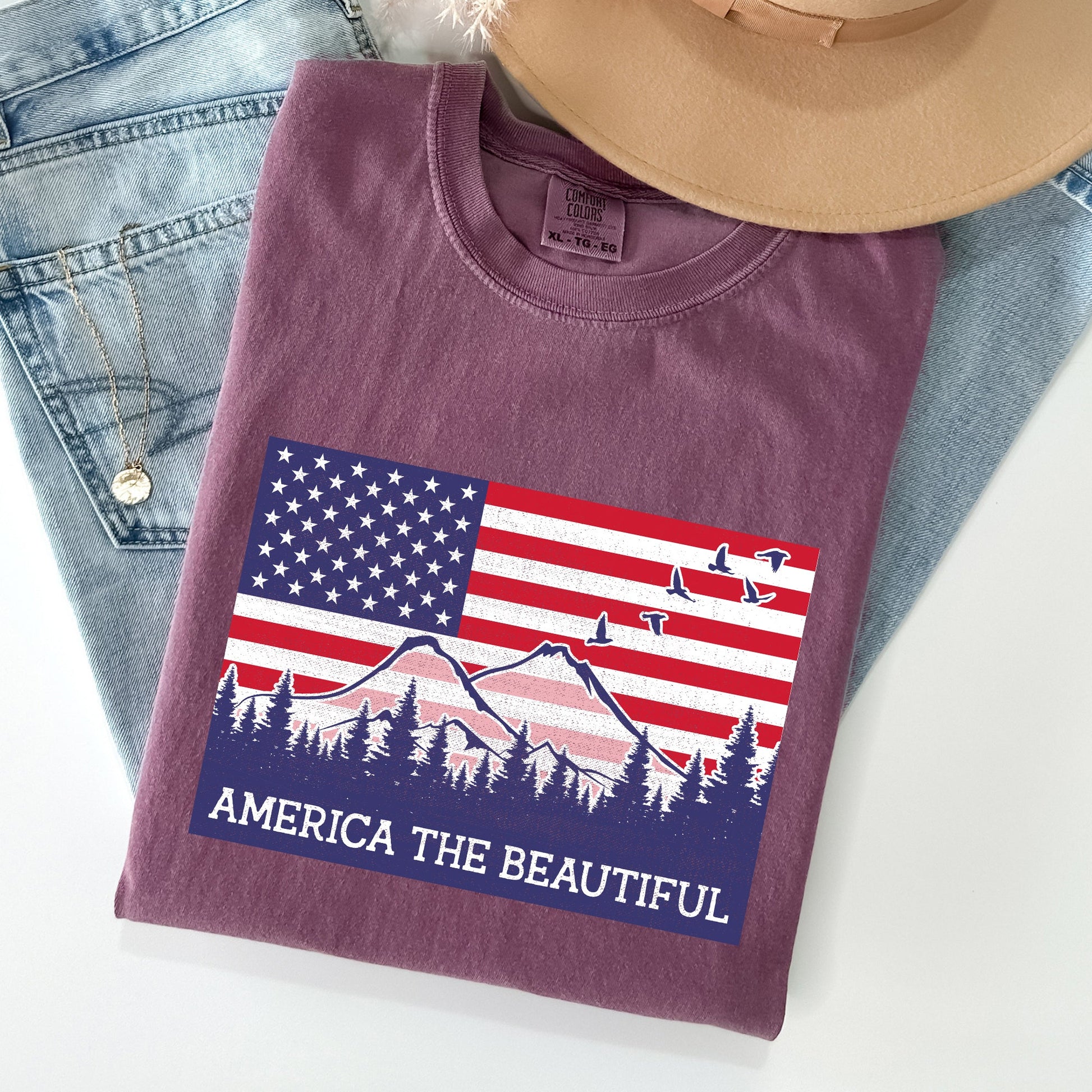 America The Beautiful, Flag, Mountains, Patriotic Tshirt Comfort Colors T-Shirt