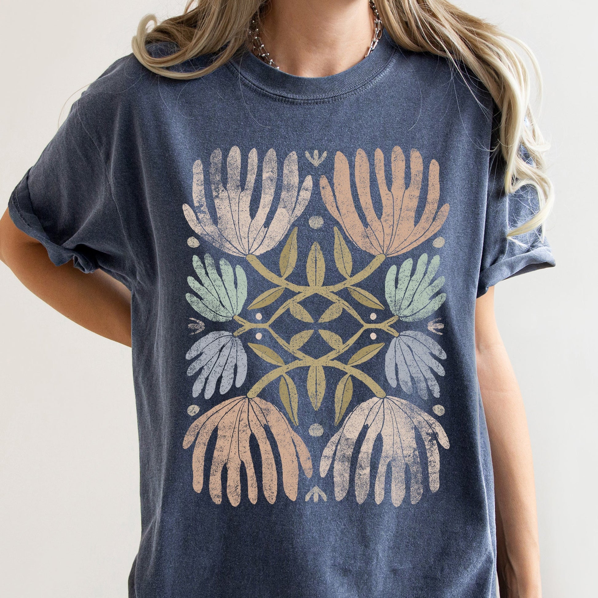 Whether you're dressing up for a casual outing or lounging at home, the Boho Folk Art Chic Floral Comfort Colors T-shirt is designed to keep you looking effortlessly stylish. Don't miss out on this essential addition to your wardrobe—order yours today and embrace the boho spirit!