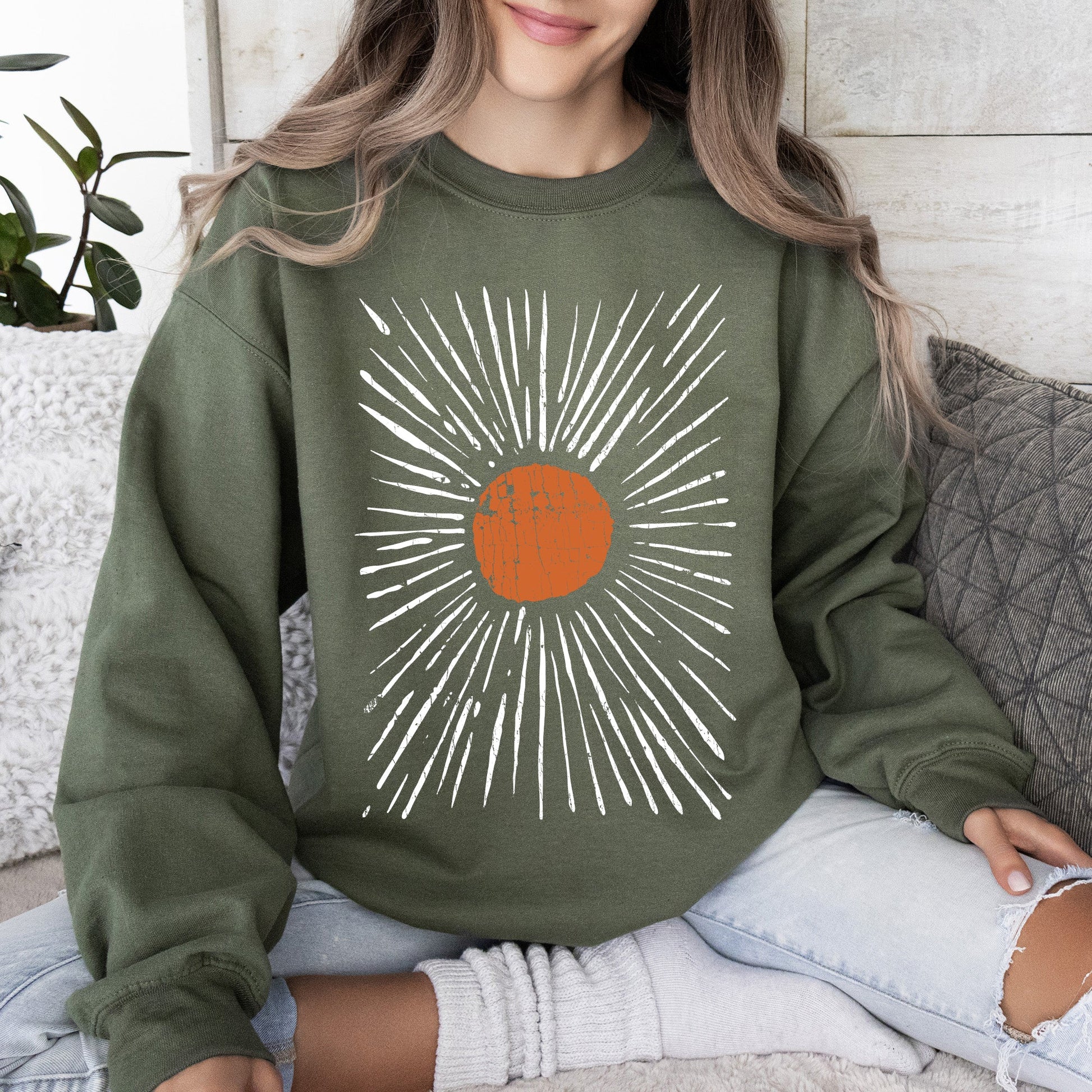Experience the unique style of our Boho Starburst, Celestial, Retro Sweatshirt, a perfect blend of comfort and eye-catching design. This unisex sweatshirt is crafted for those who appreciate artistry in their wardrobe. Whether you're lounging at home or out with friends, this sweatshirt elevates your look while ensuring you stay cozy.