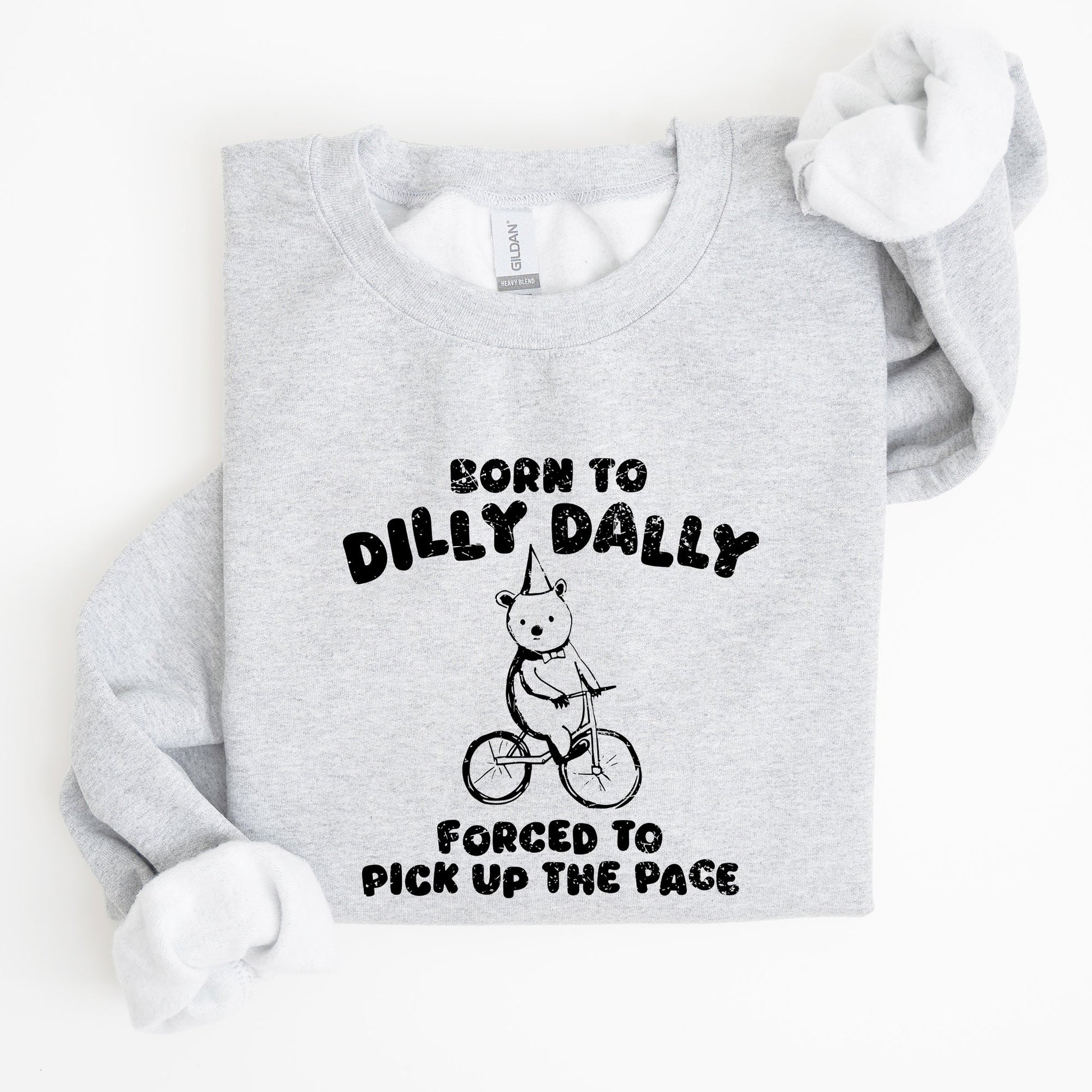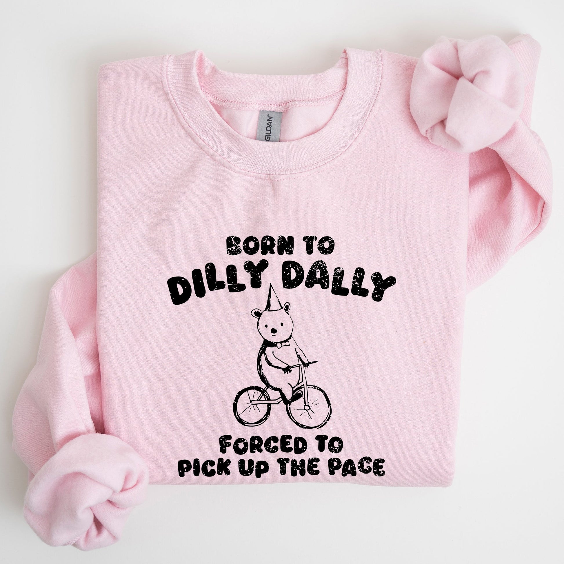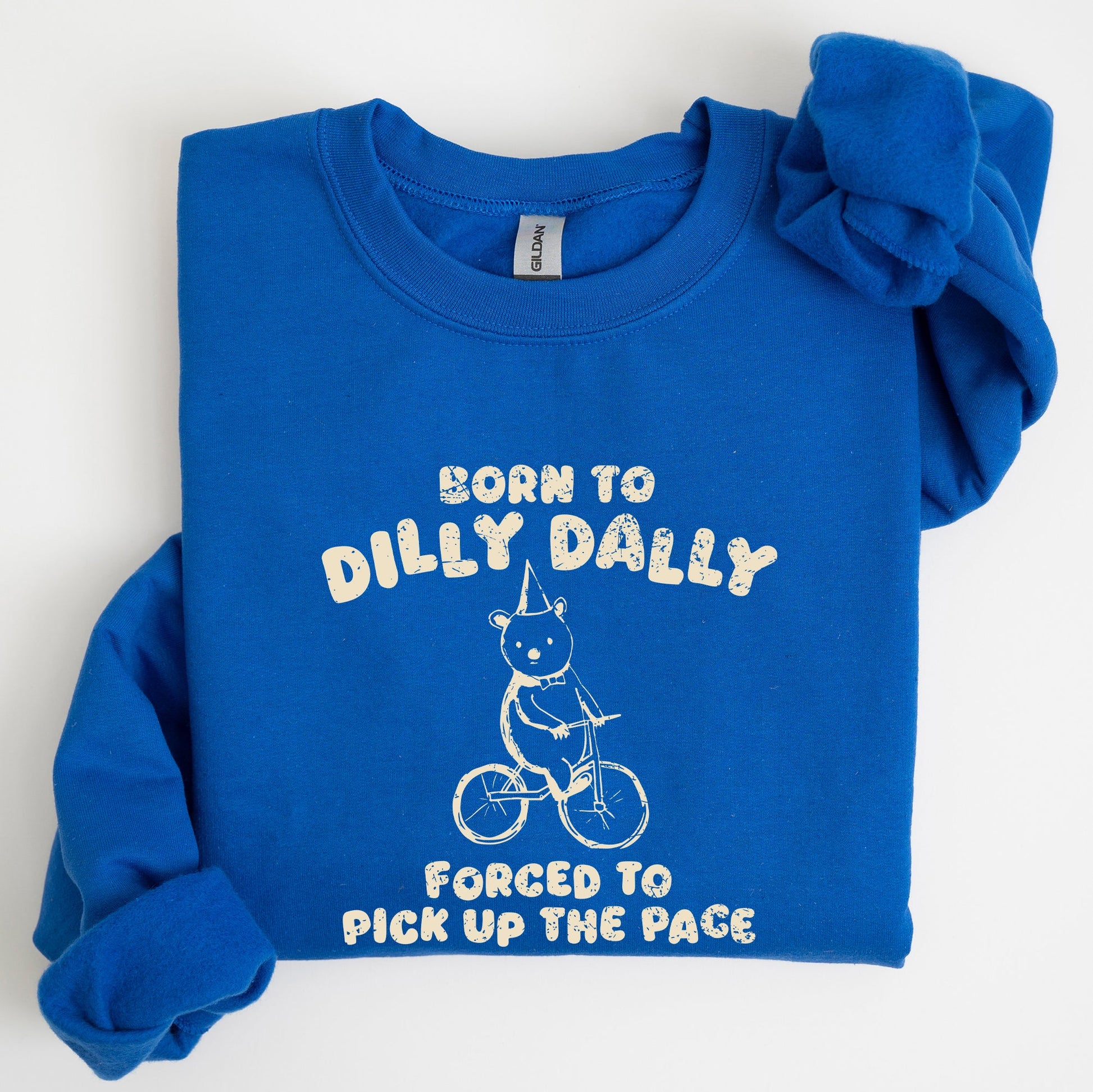 Pair the Born To Dilly Dally, Bear, Meme, Aesthetic, Funny Sweatshirt with your favorite jeans for a relaxed yet trendy look, or layer it over a shirt for added style. Perfect for casual outings, cozy nights in, or as a fun gift for a fellow meme lover.