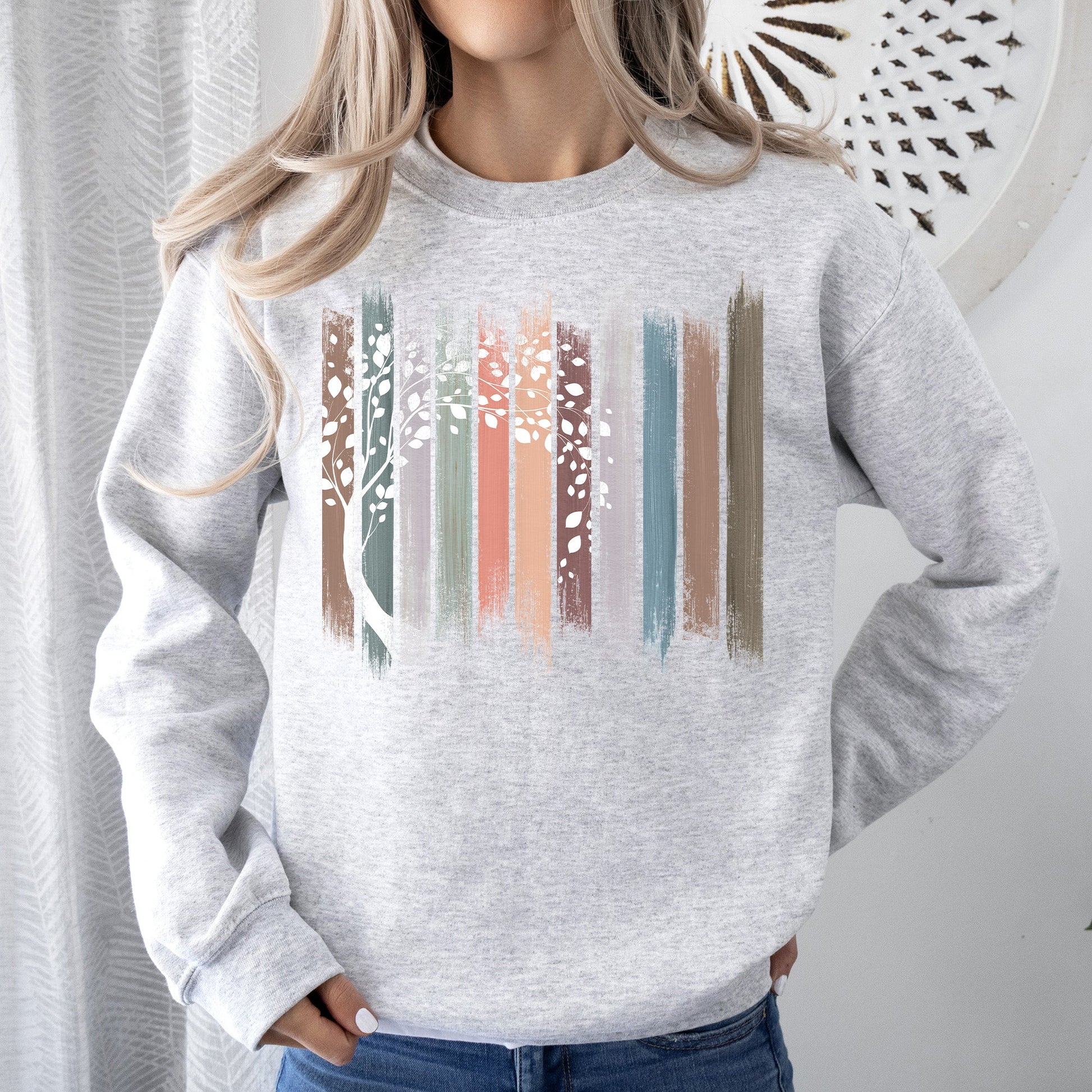 The Botanical Stripes Tree Sweatshirt pairs perfectly with jeans for a trendy, laid-back look. Layer it over shirts for added style and warmth, making it a versatile choice for both casual outings and cozy nights in. Make a statement with this stylish sweatshirt that reflects your personality while keeping you comfortable!