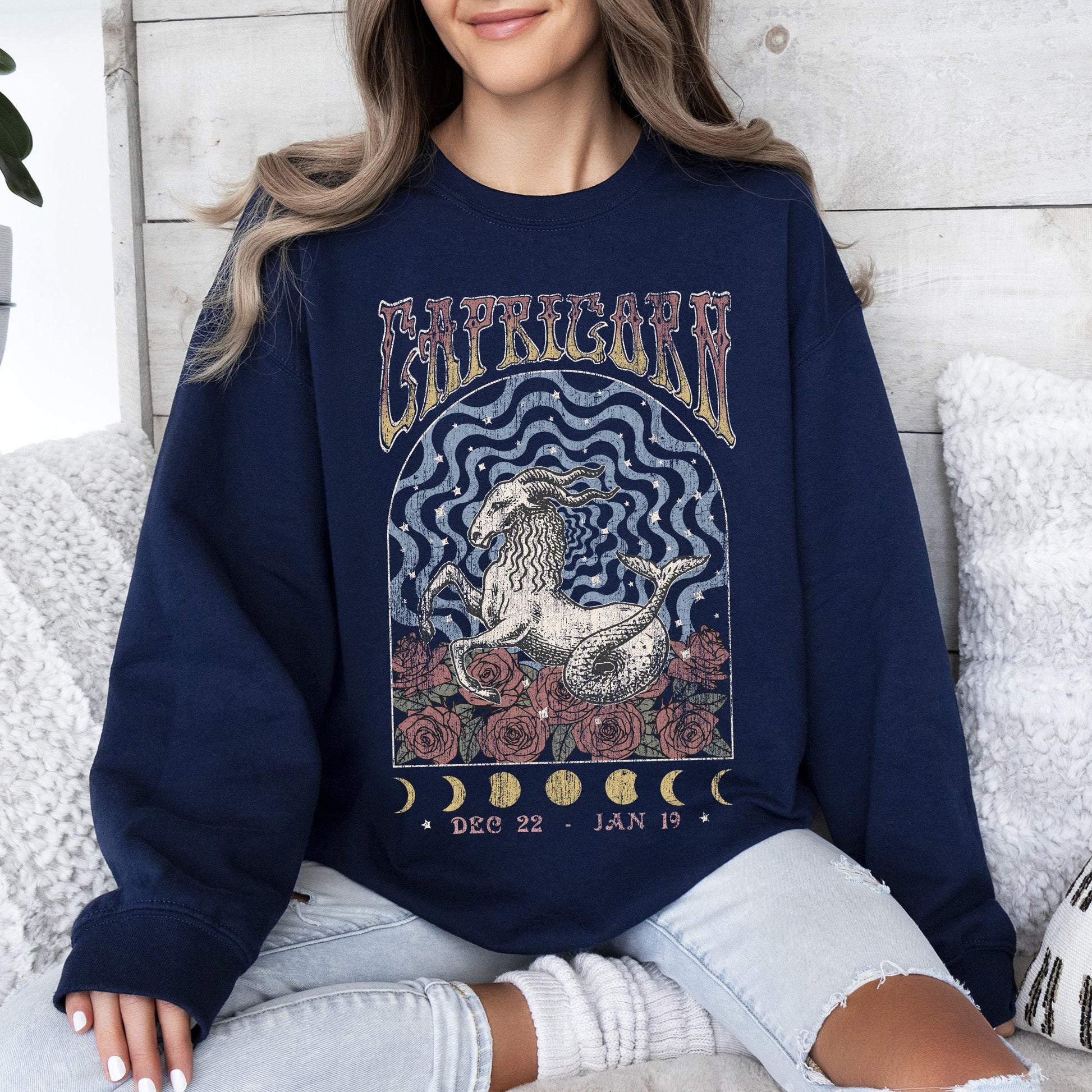 This stylish sweatshirt pairs effortlessly with jeans for a relaxed, trendy look or can be layered over your favorite shirts for added flair. Ideal for casual outings, cozy nights in, or any occasion where you want to express your astrological pride. Show off your Capricorn Zodiac, Astrology, Horoscope Sweatshirt and let your zodiac sign shine!