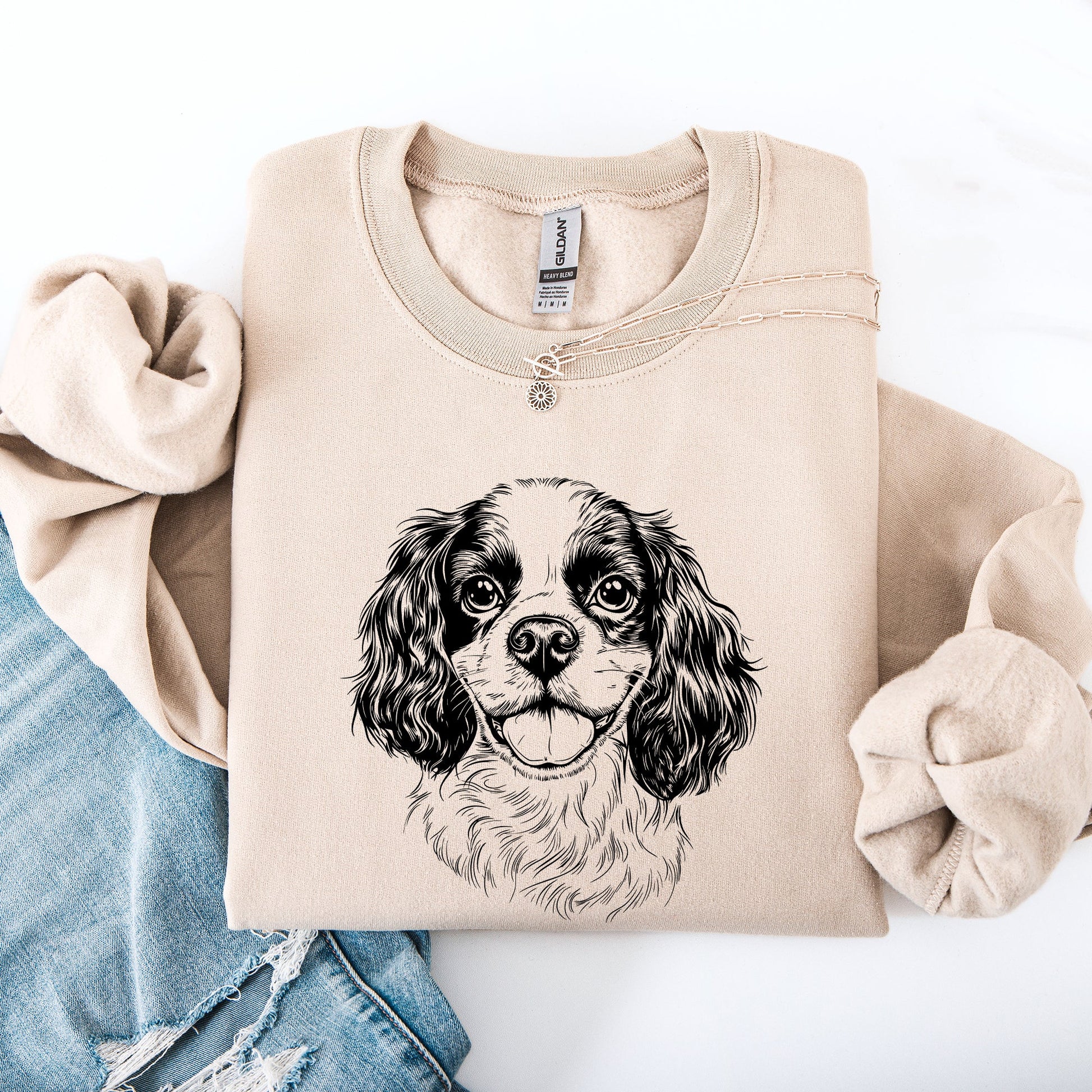 The Cavalier King Charles, Pet, Dog Breed Sweatshirt pairs perfectly with jeans for a relaxed, trendy look. It can also be layered over shirts for added warmth and style, making it the ideal choice for both casual outings and cozy nights in.