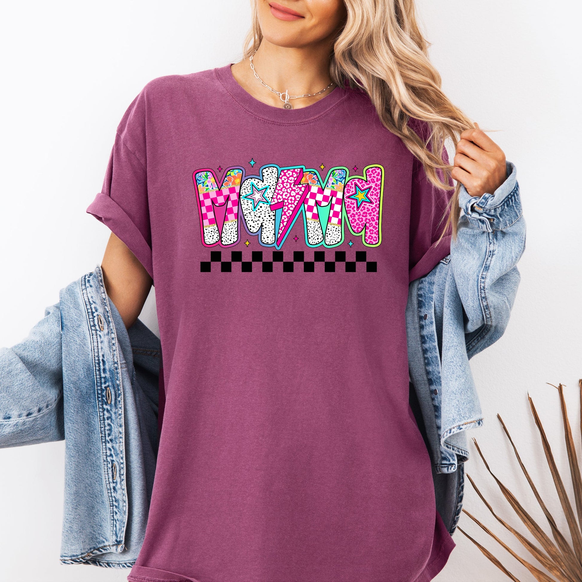 Embrace vibrant style and retro flair with the Colorful Mama, Bright, Checkered, Retro Comfort Colors T-Shirt. Perfect for those who love to stand out, this T-shirt combines comfort and a bold aesthetic, making it an essential addition to your wardrobe.