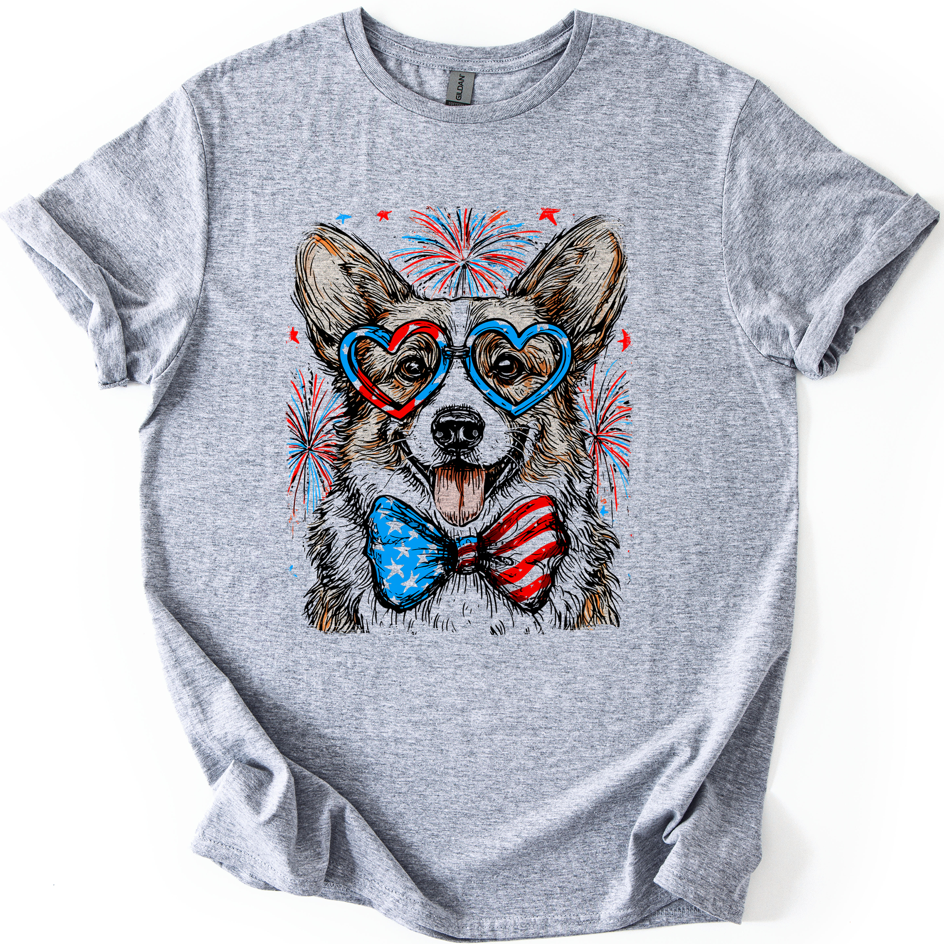 Pair this versatile t-shirt with shorts, jeans, or layer it with a stylish jacket for a fashionable look that highlights your passion for pets and patriotism. More than just clothing, it symbolizes the unique bond between you and your beloved Corgi while showcasing your unwavering love for America.
