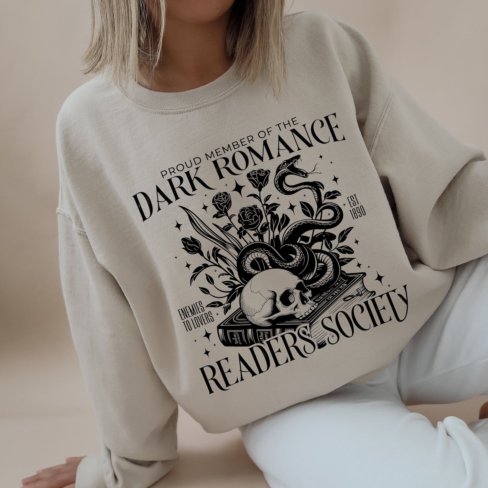 Embrace your passion for literature and cozy comfort with our Dark Romance Readers Society, Romantasy, Booktok, Library, Books Sweatshirt. This versatile sweatshirt is designed for book lovers who want to wear their love for dark romance and fantastical tales with pride. Crafted from a premium cotton-polyester blend, this unisex pullover combines softness and durability, making it an essential addition to your wardrobe.