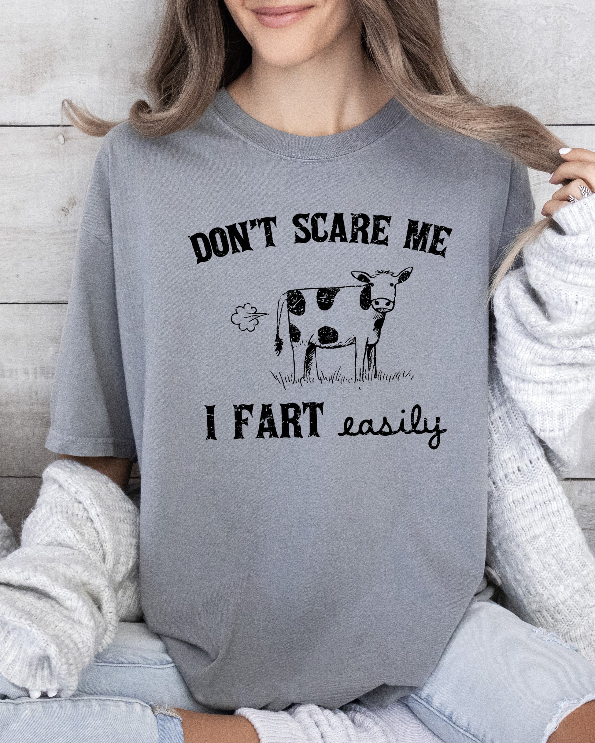 Don't Scare Me, I Fart Easily, Cow, Funny, Pass Gas, Aesthetic, Humorous Tshirt Comfort Colors T-Shirt