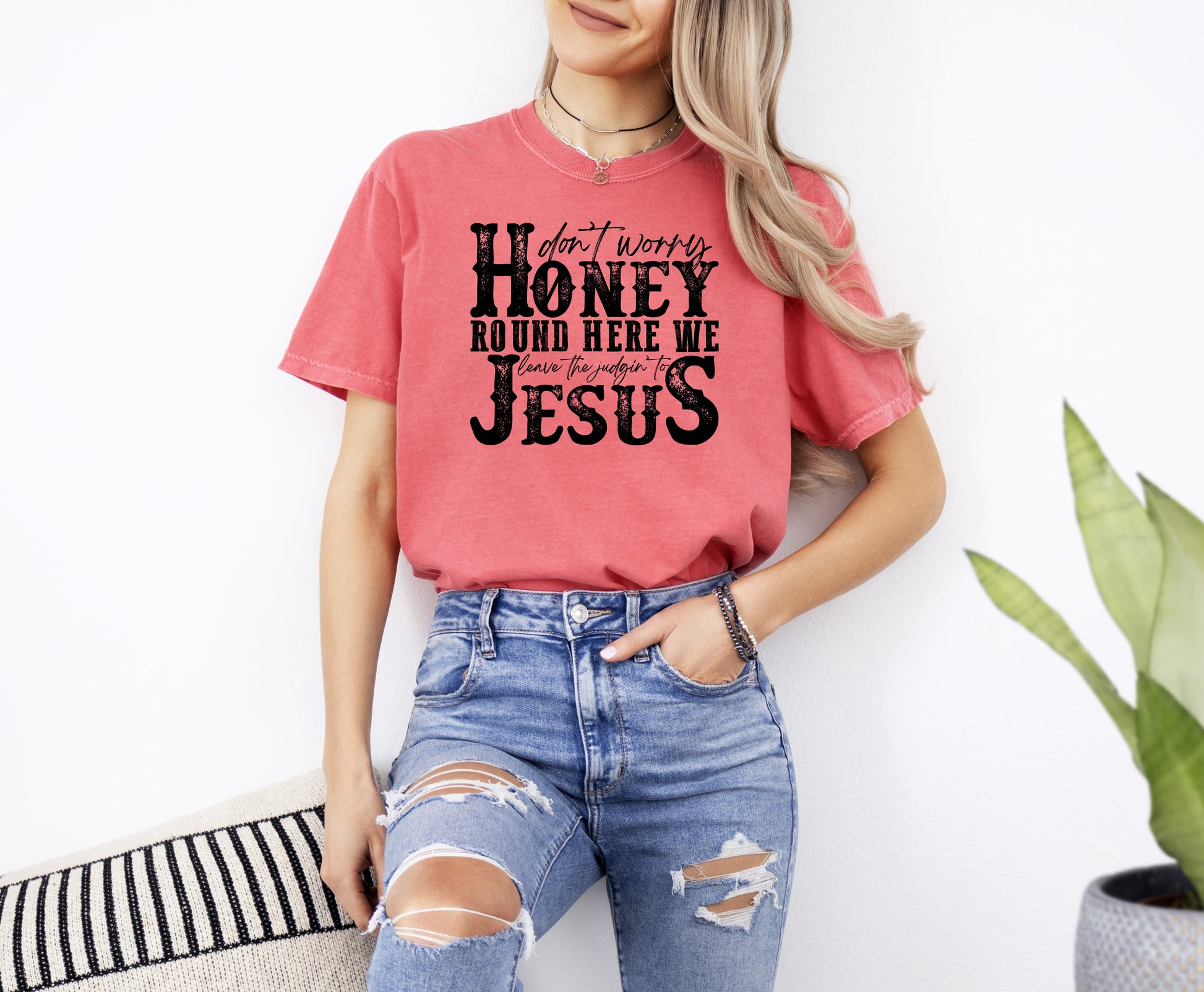 Don't Worry Honey Round Here We Leave the Judgin' to Jesus, Country, Western, Christian, God Is Love, Tshirt Comfort Colors T-Shirt
