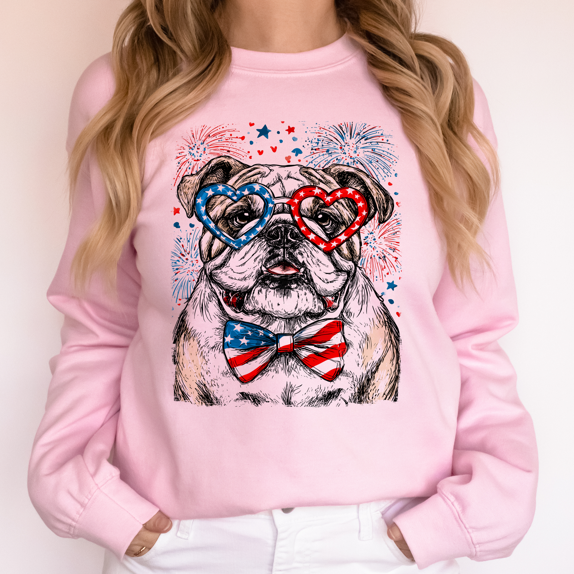 English Bulldog Patriotic Dog, USA, America, Pet Lover, 4th of July Sweatshirt