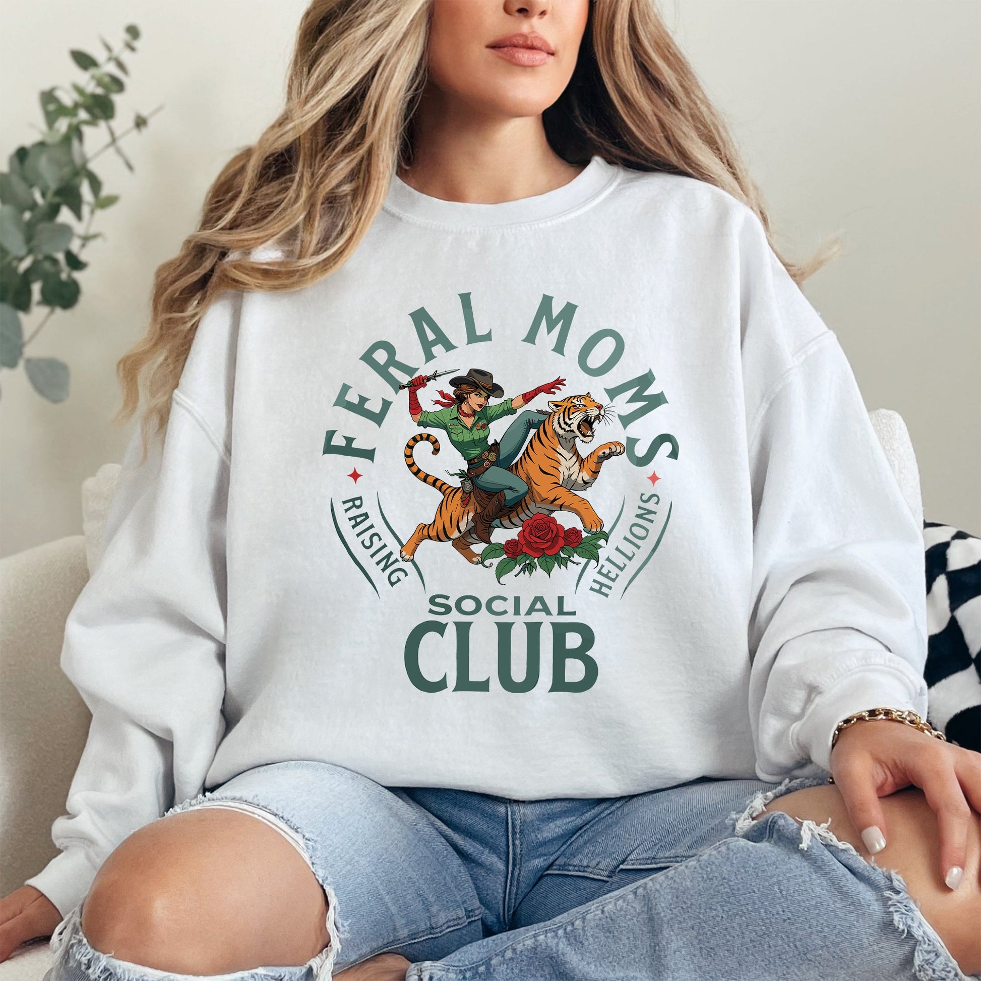 Feral Mom's Social Club, Raising Hellions, Funny, Tiger, Mother's Day Sweatshirt