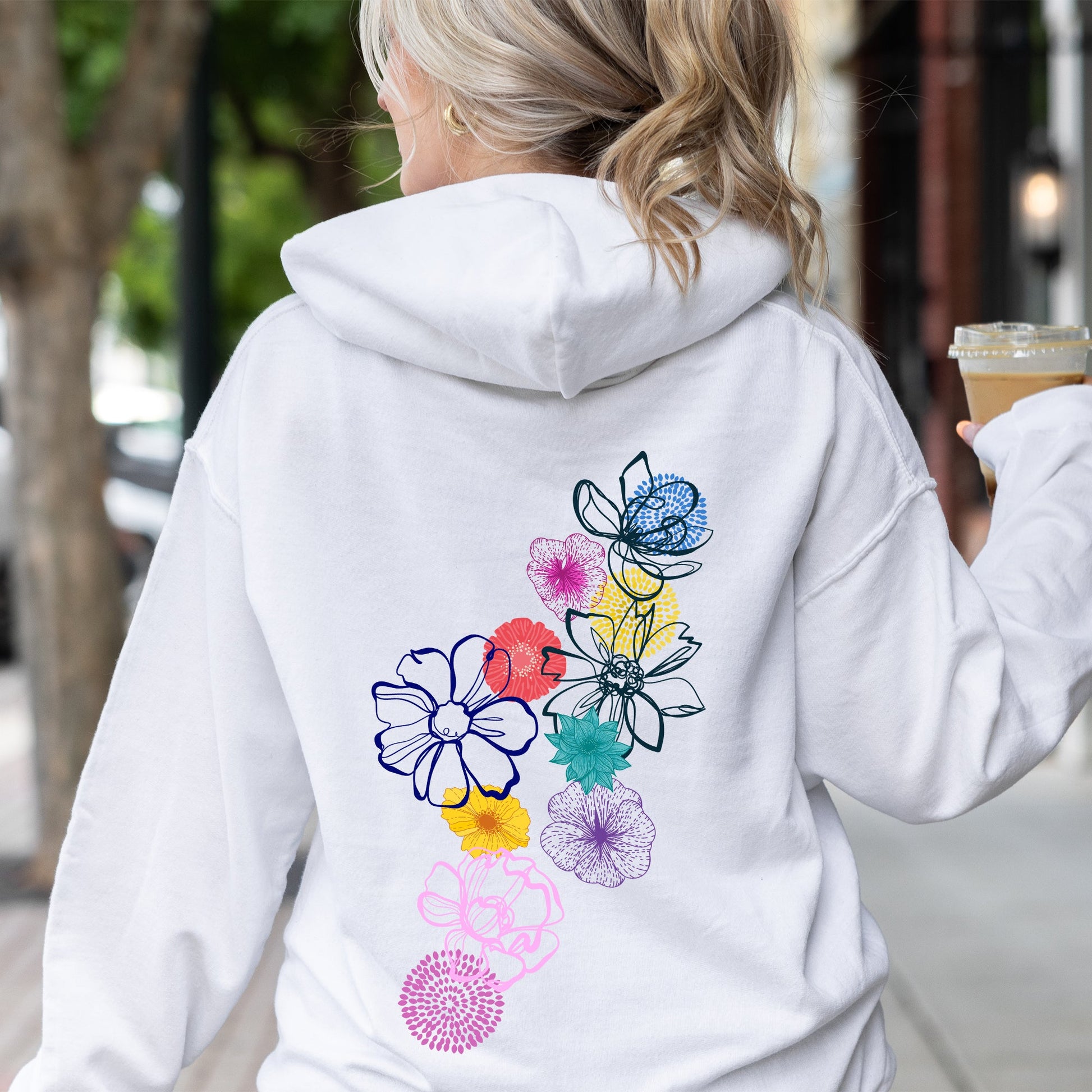 Floral Outlines, Leaves, Flowers, Colorful Hoodie
