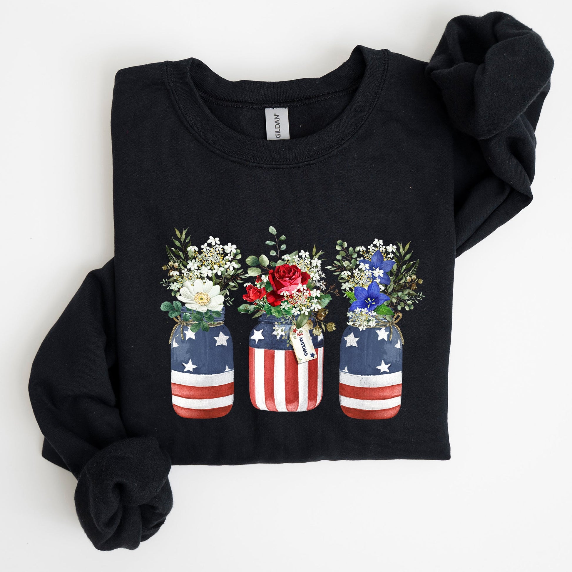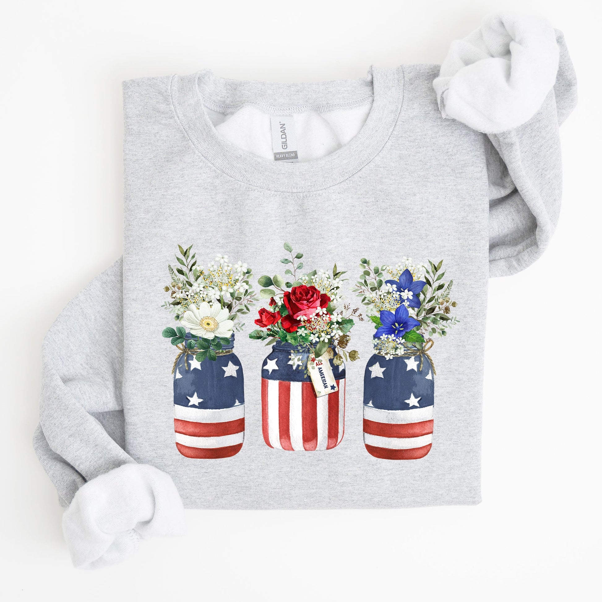 Flowers In Mason Jars, All American, Patriotic Sweatshirt