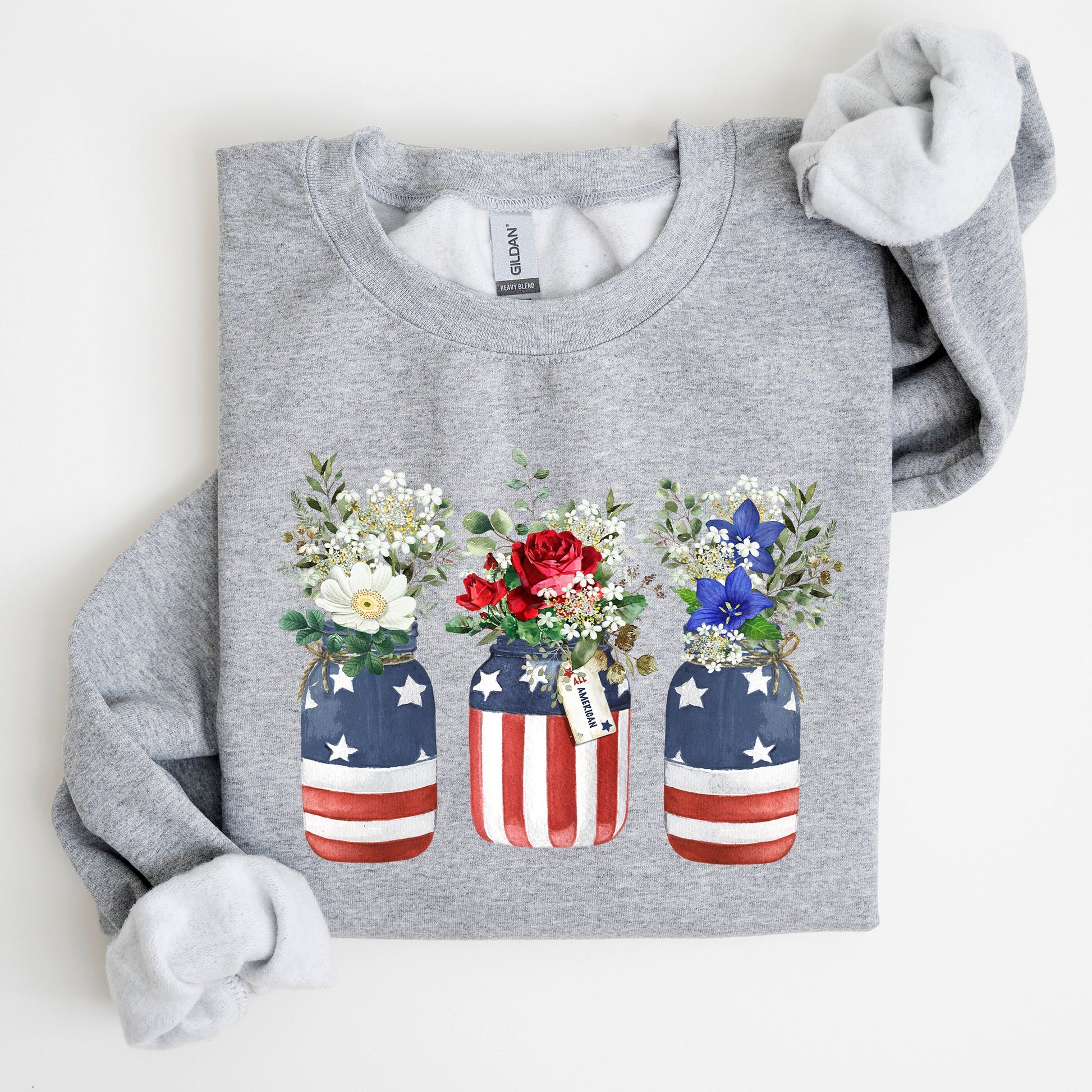 Introducing the Flowers In Mason Jars, All American, Patriotic Sweatshirt, a perfect blend of comfort and style that celebrates your love for the great outdoors and patriotism. Crafted from the softest cotton-polyester blend, this unisex sweatshirt is designed to suit every body type, making it an essential addition to your casual wardrobe.