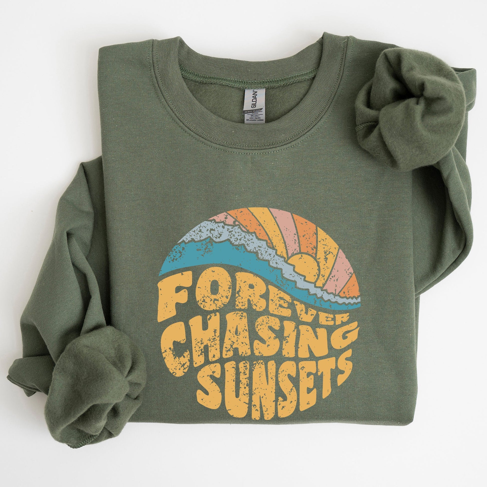 Forever Chasing Sunsets, Beach, Retro Sweatshirt