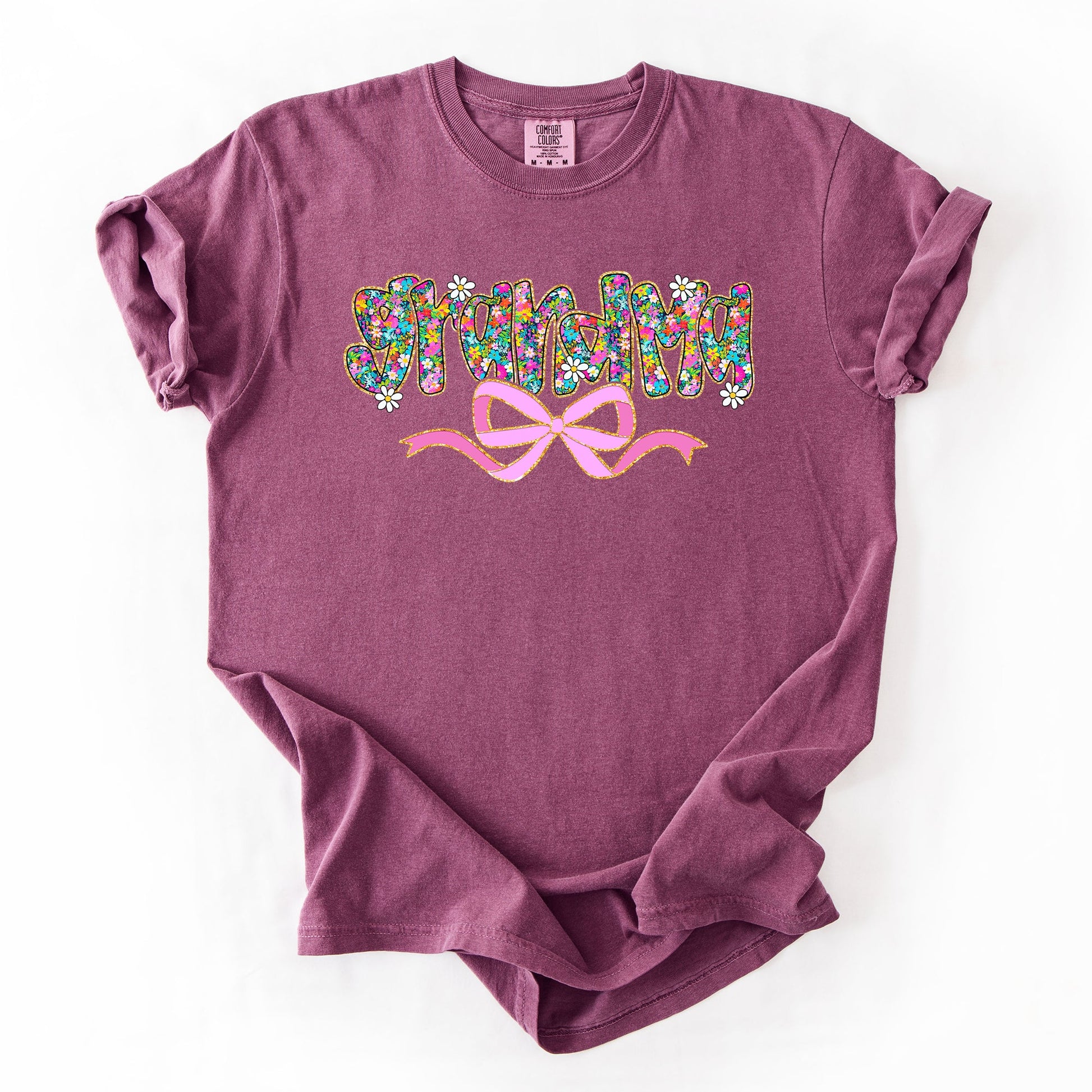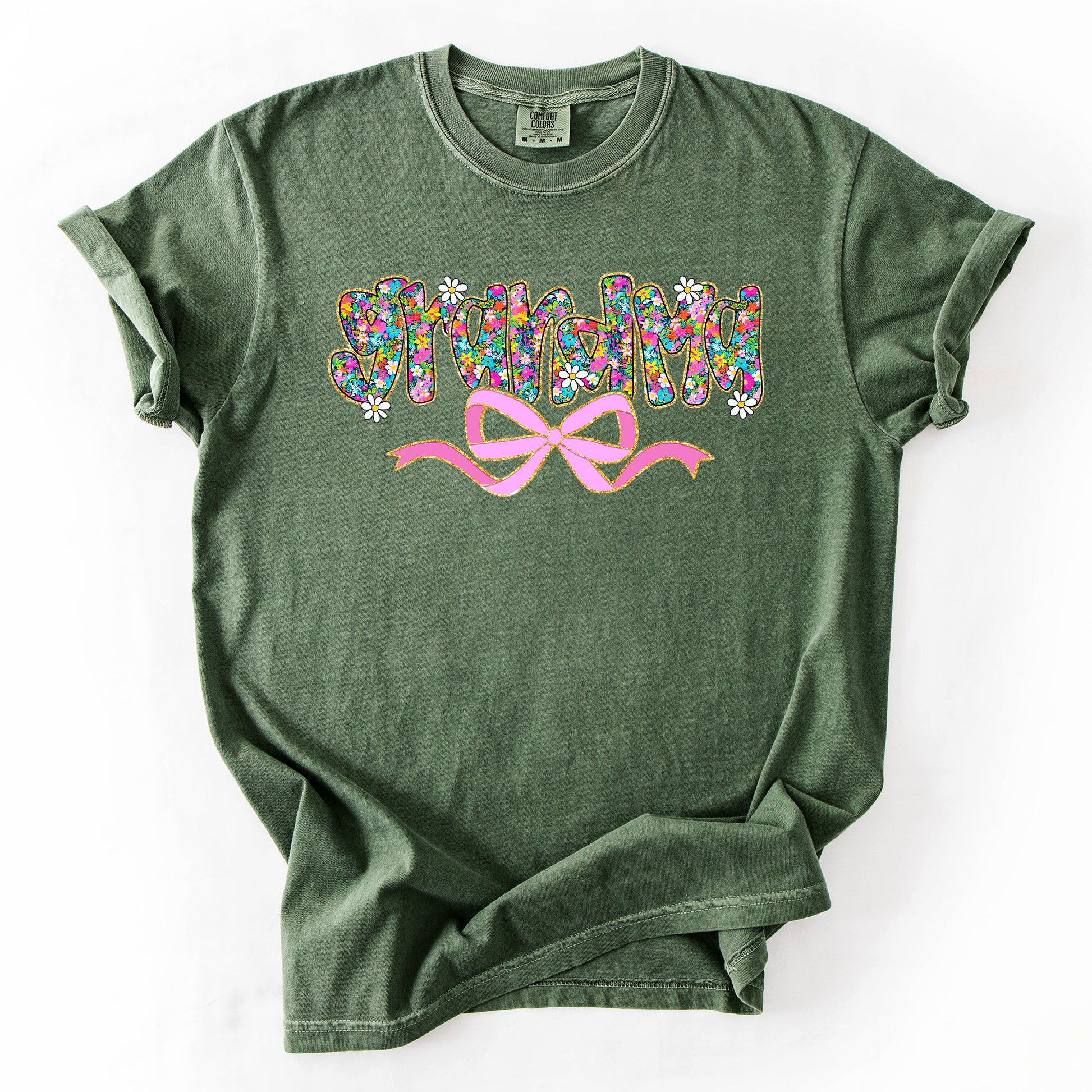 Grandma, Mother's Day, Ribbon, Bow, Floral, Flowers, Bright, Colorful, Pastels Tshirt Comfort Colors T-Shirt