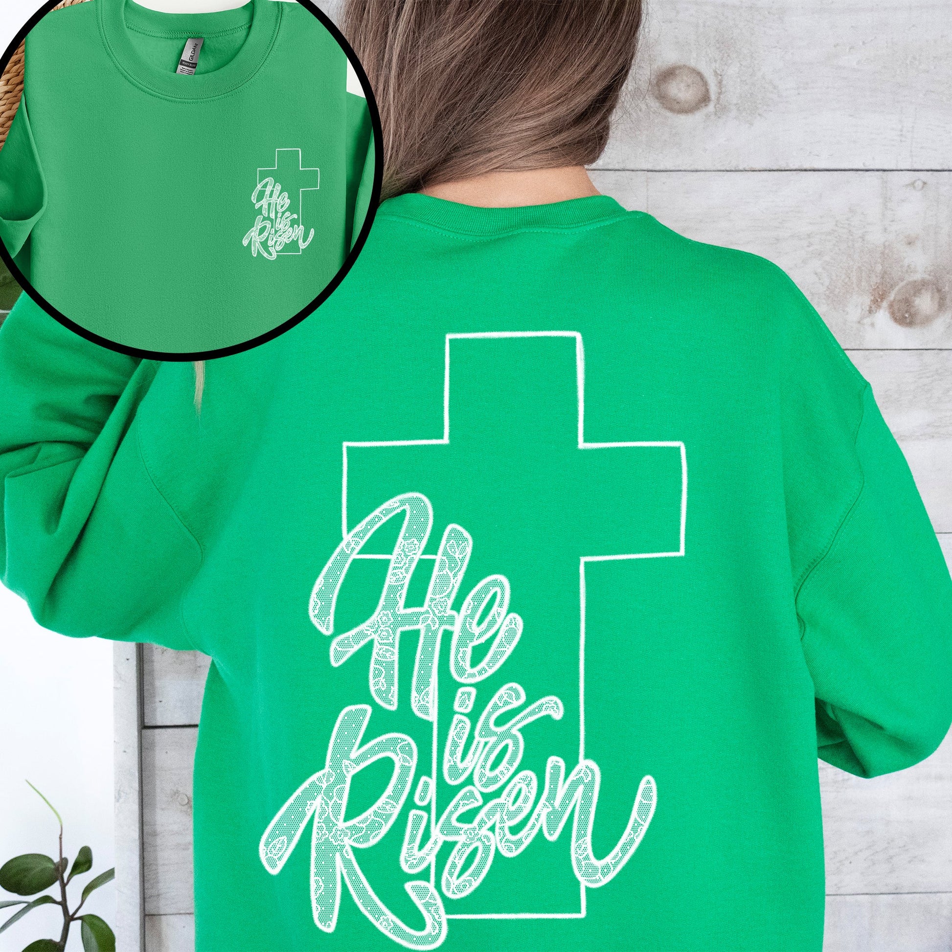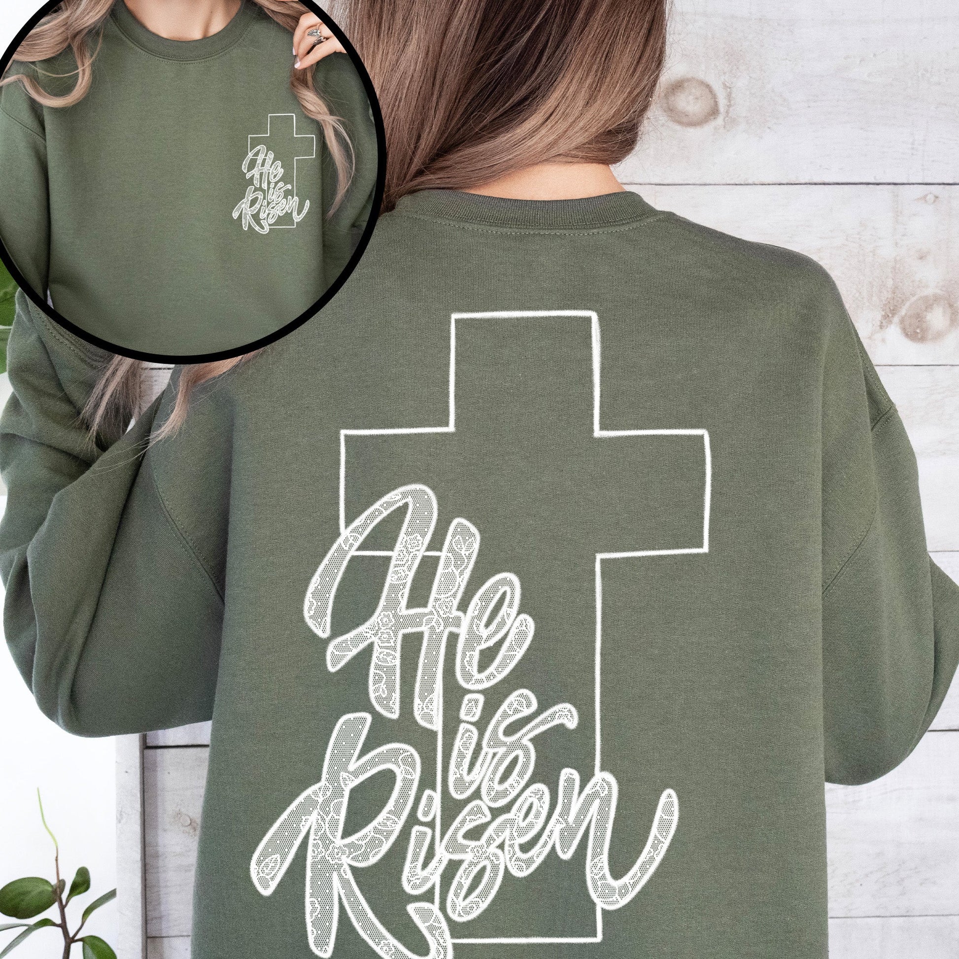 He Is Risen, Faux Lace, Girly, Cross, Coquette, Christian, Jesus, Gospel, Faith, Saved Sweatshirt