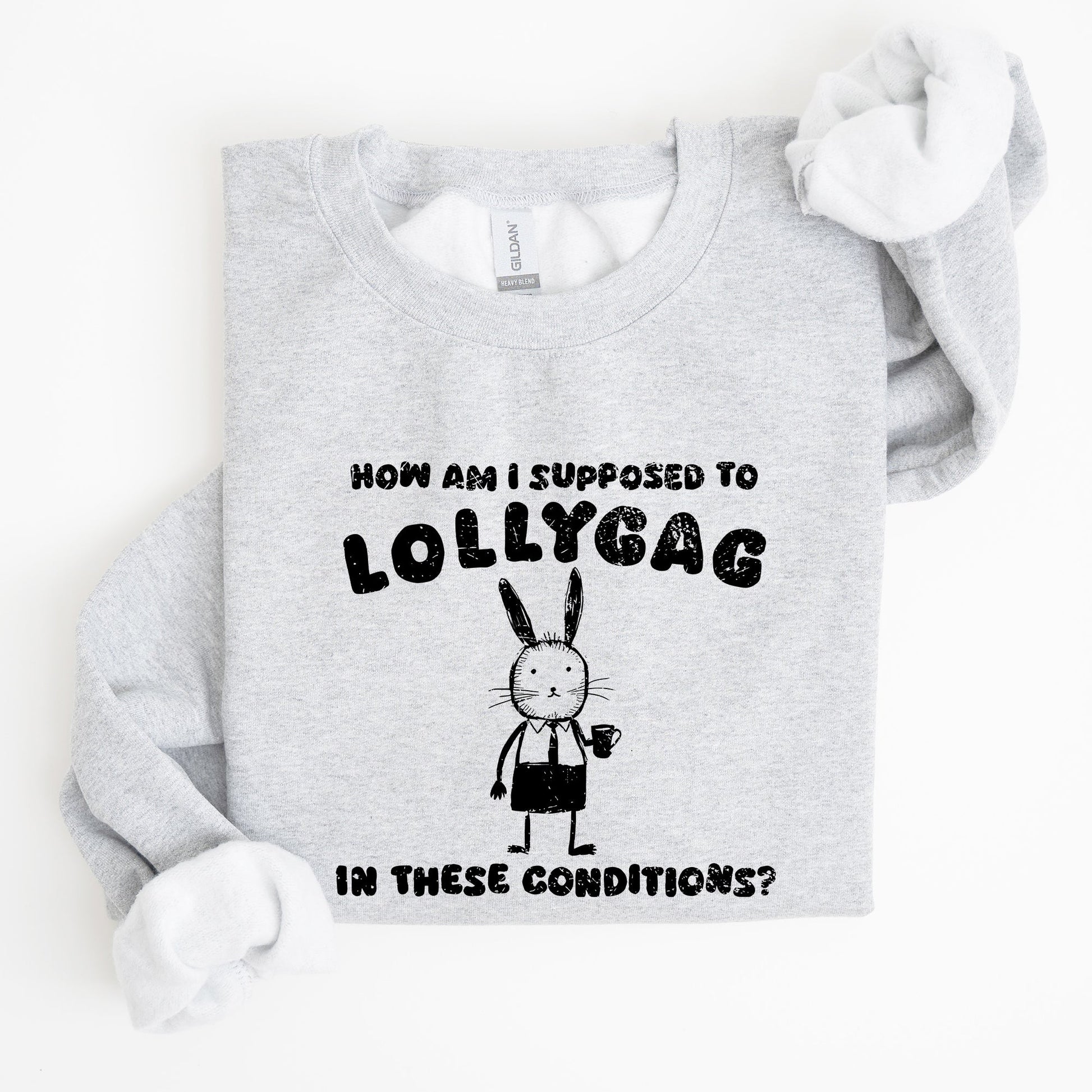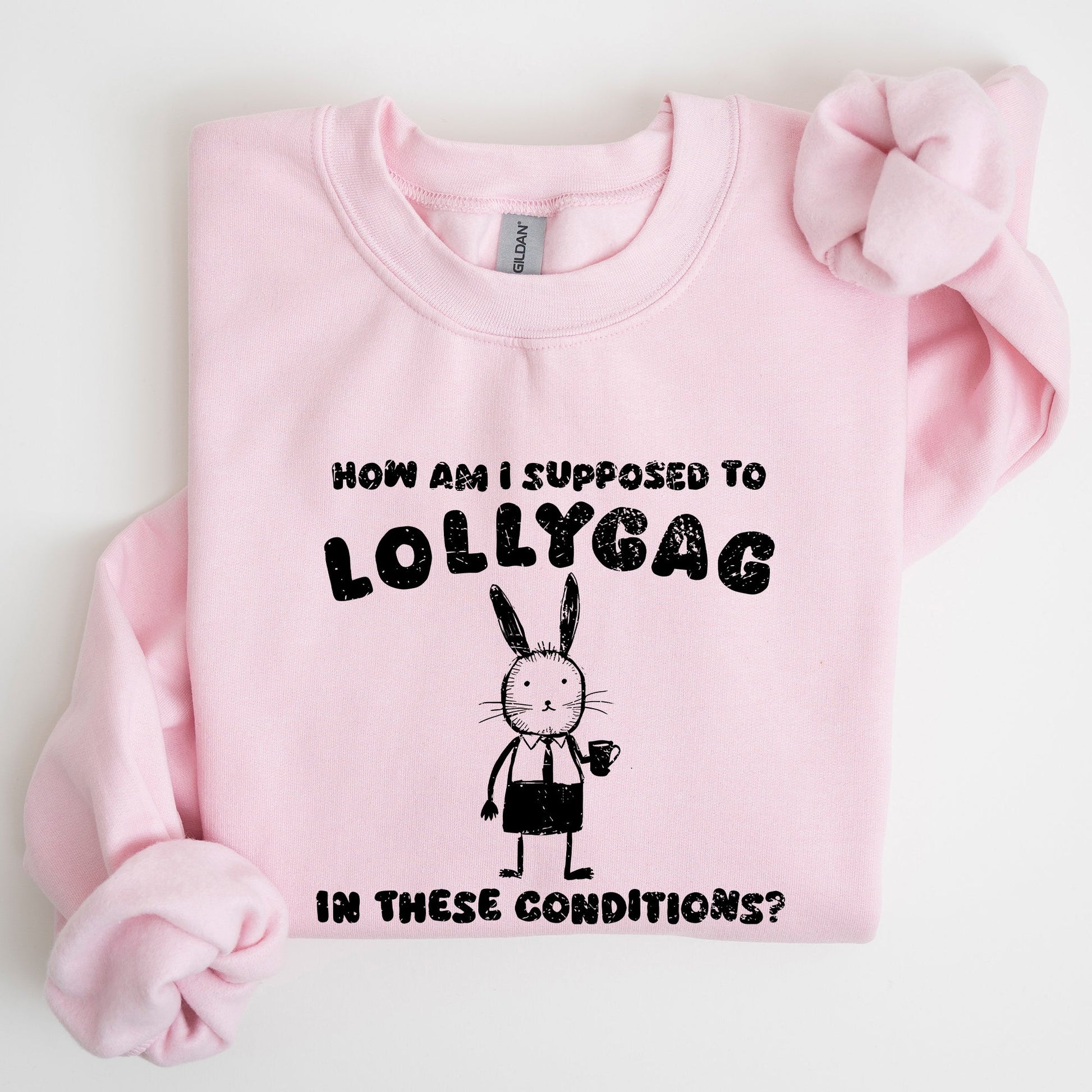 Bring a smile to your day and showcase your fun side with the How Am I Supposed To Lollygag, Rabbit, Bunny, Meme, Aesthetic, Funny Sweatshirt. Order yours today and embrace the aesthetics of humor!