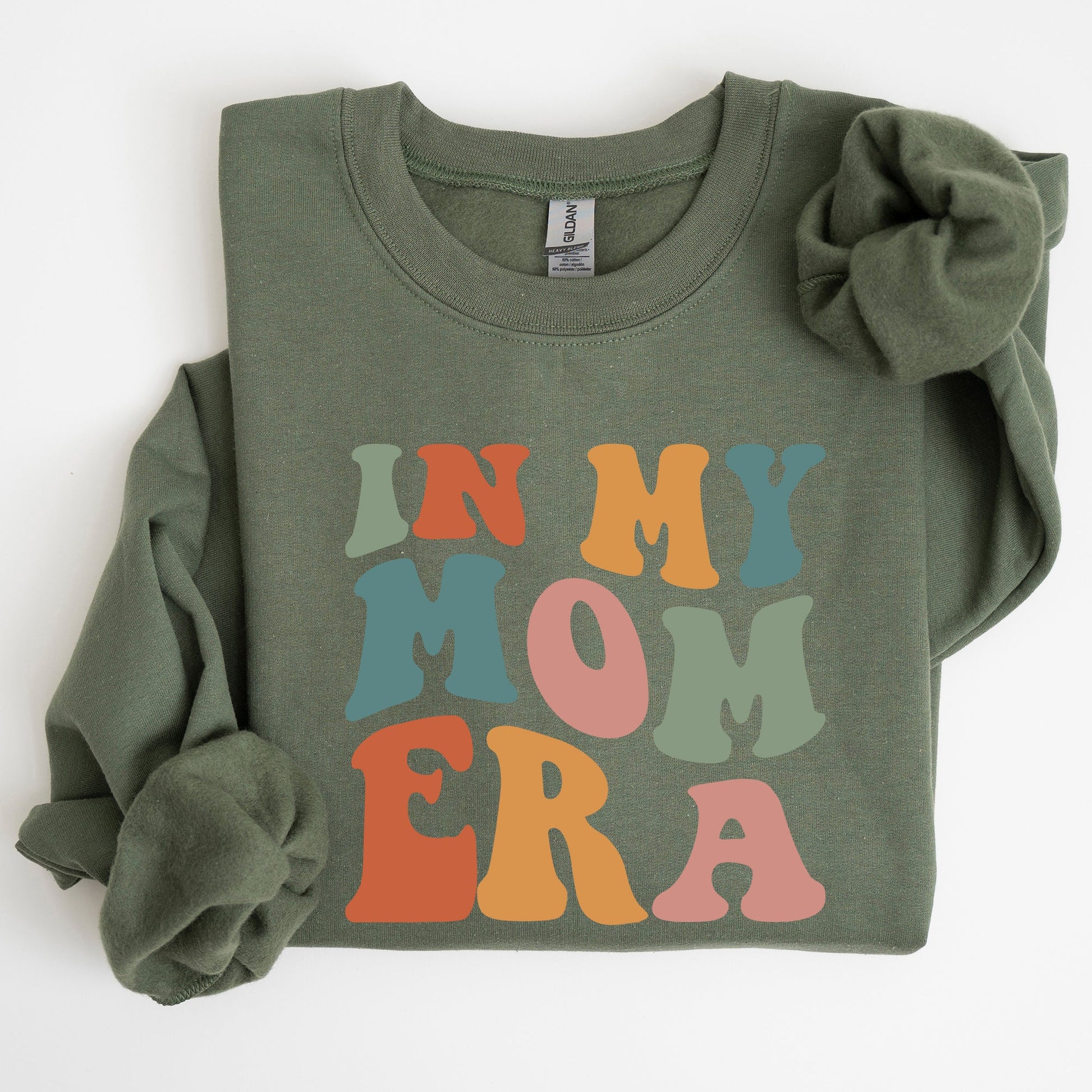 The In My Mom Era, Mother's Day Colorful Sweatshirt pairs effortlessly with jeans for a laid-back yet stylish look. It can also be layered over your favorite shirts for a casual chic vibe, making it perfect for both outings and cozy nights at home.