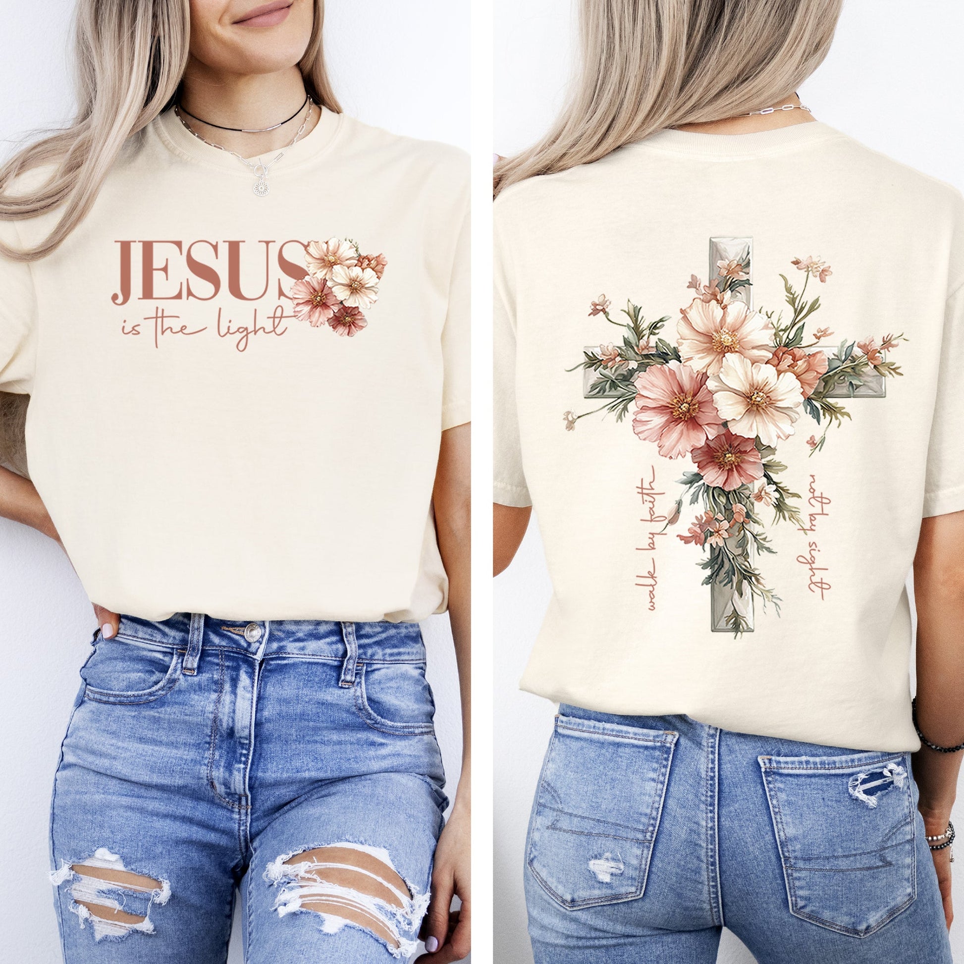 Jesus Is The Light, Floral Cross, Christian, Jesus, Gospel, Faith, Saved Tshirt Comfort Colors T-Shirt