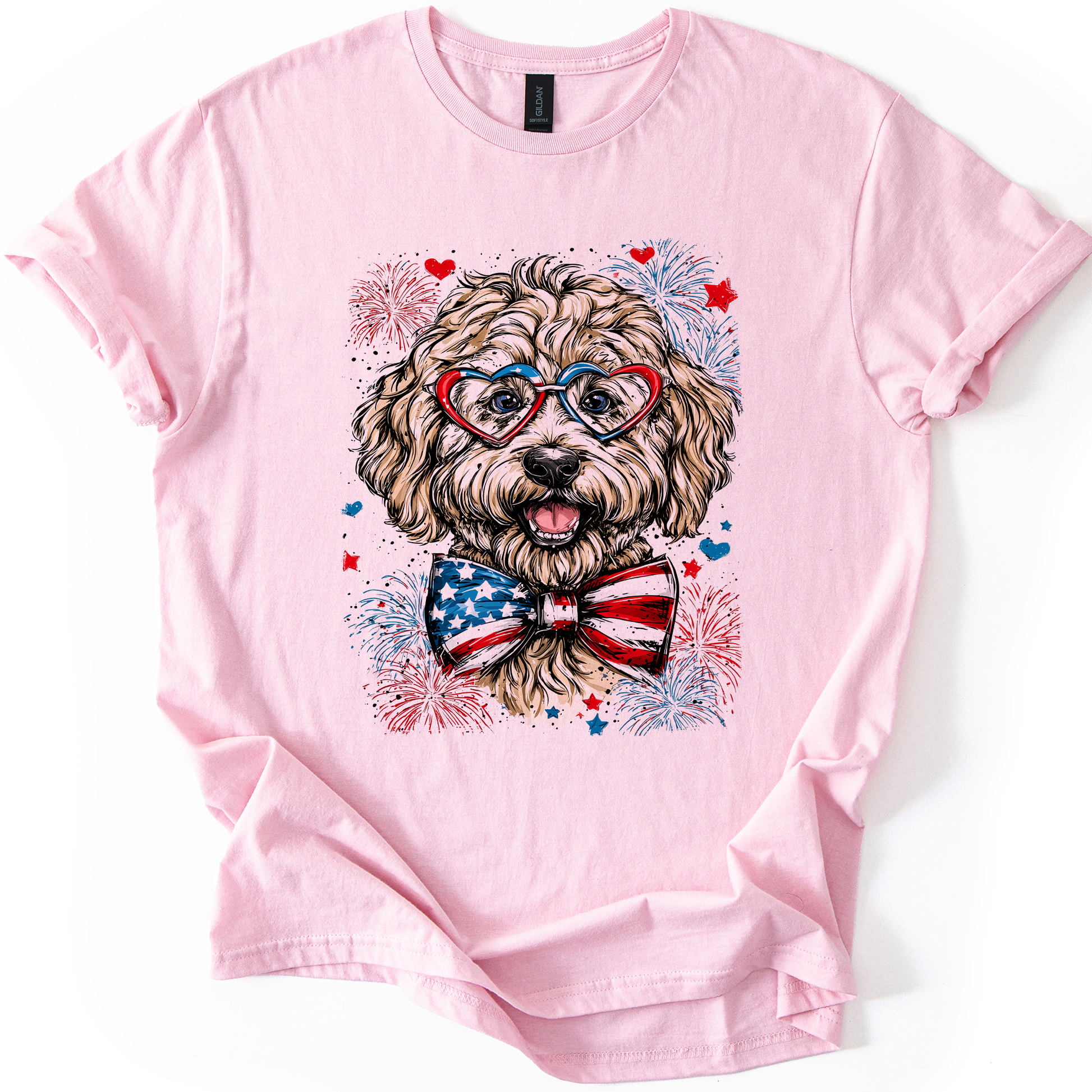 Labradoodle Patriotic Dog, USA, America, Pet Lover, 4th of July, Soft Style T-Shirt