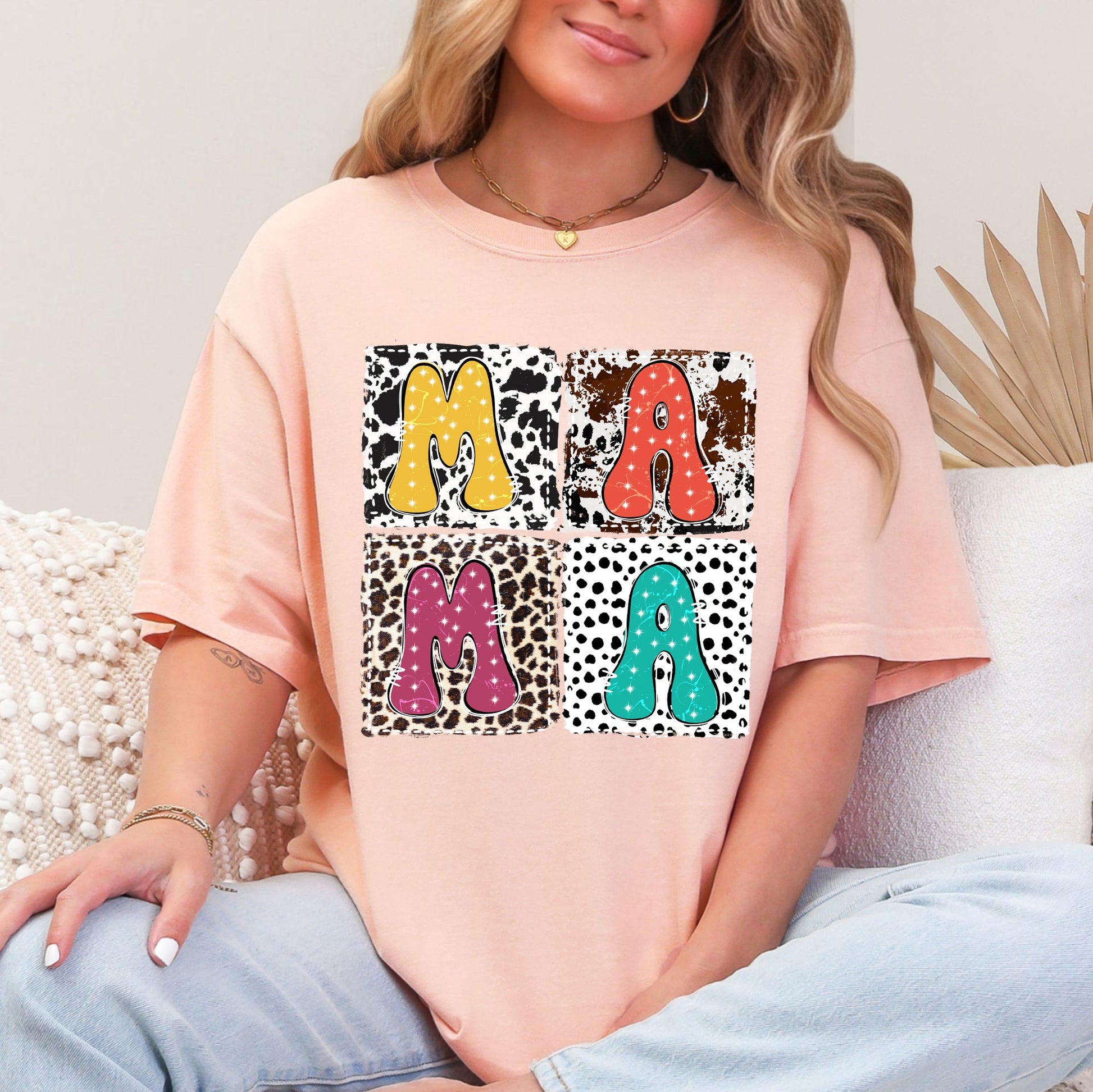 Mama, Animal Print, Leopard, Cow, Dalmatian, Retro, Mother's Day Tshirt Comfort Colors T-Shirt