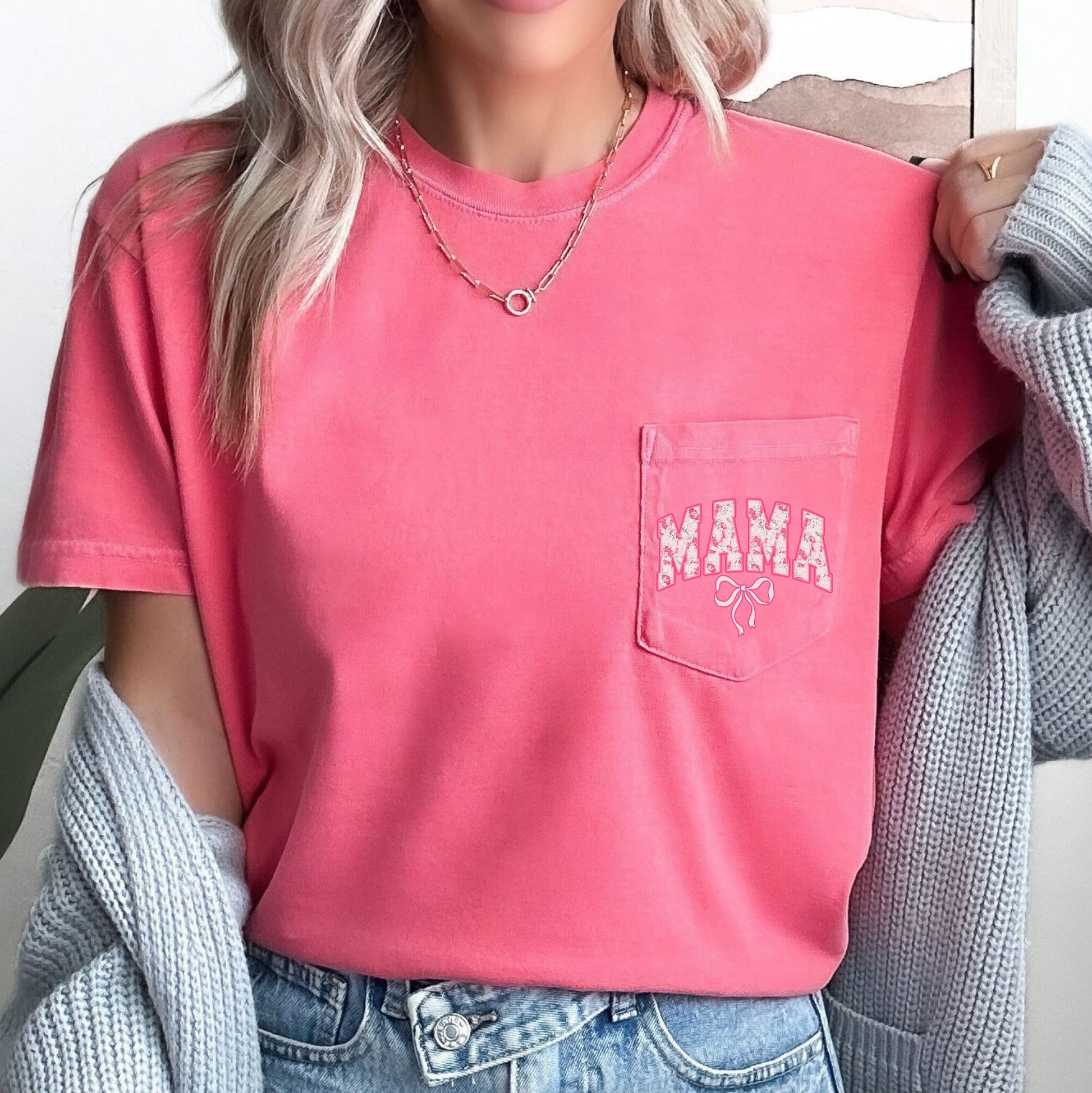 Mama, Coquette, Pocket, Ribbons, Bows Pocket Tee Comfort Colors T-Shirt