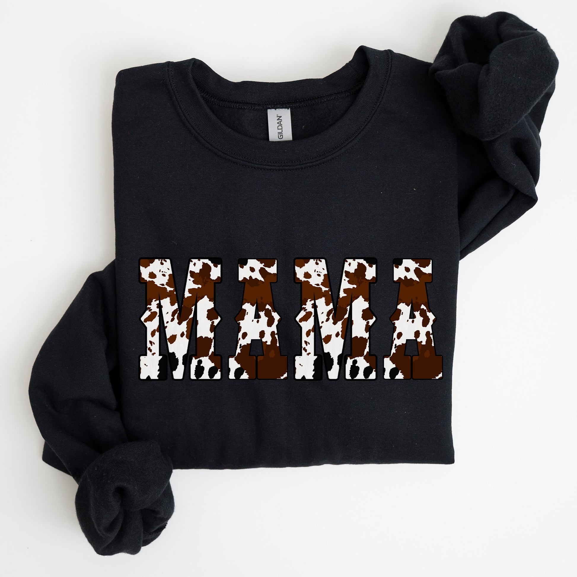 Mama, Cow Print, Western, Country, Varsity, Retro, Vintage Sweatshirt