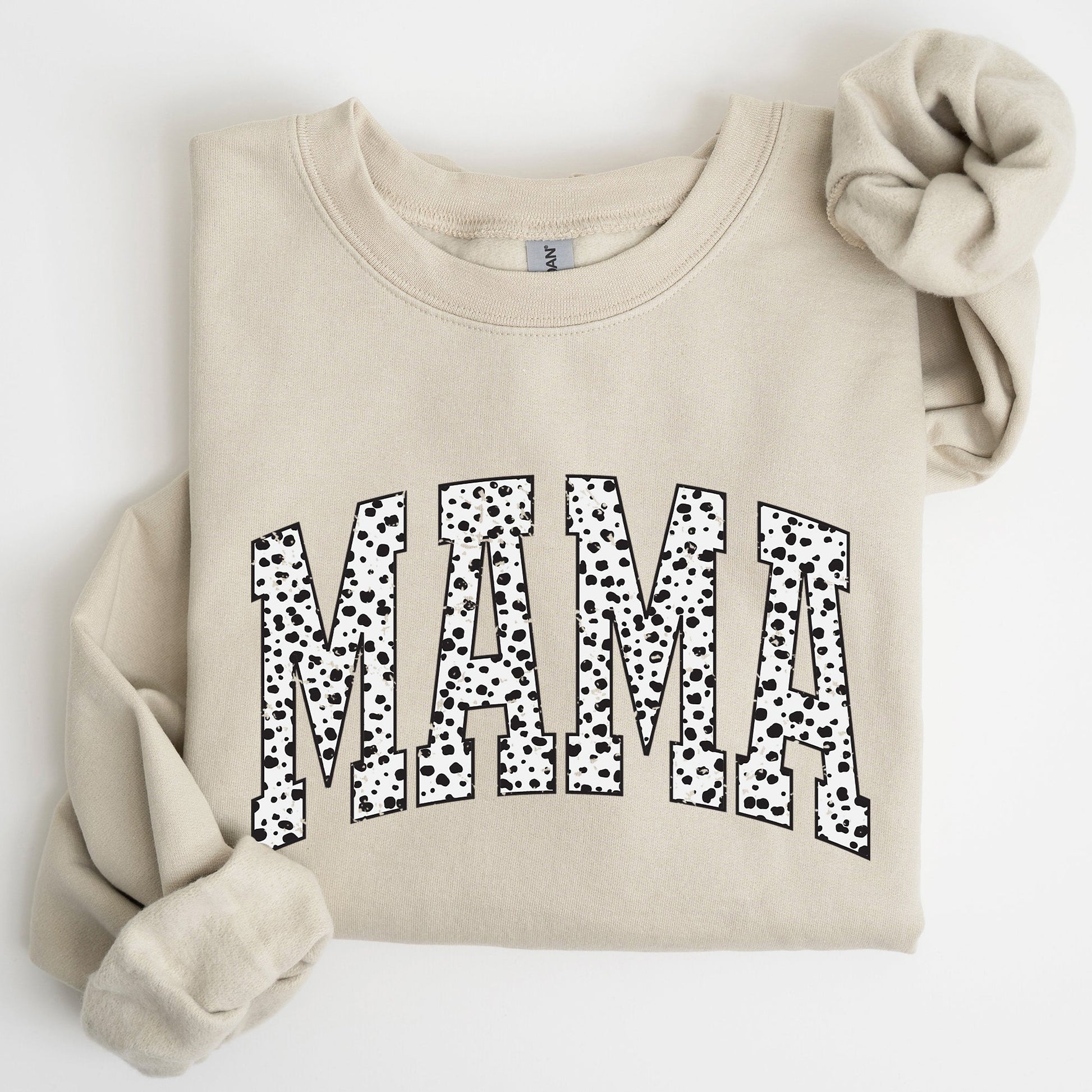 Experience the perfect blend of style and comfort with our Mama, Dalmatian Print, Varsity, Retro, Vintage Sweatshirt. This sweatshirt is designed for those who appreciate a trendy yet cozy wardrobe staple. Made with a soft fleece interior, it promises all-day comfort, making it ideal for casual outings or relaxing at home.