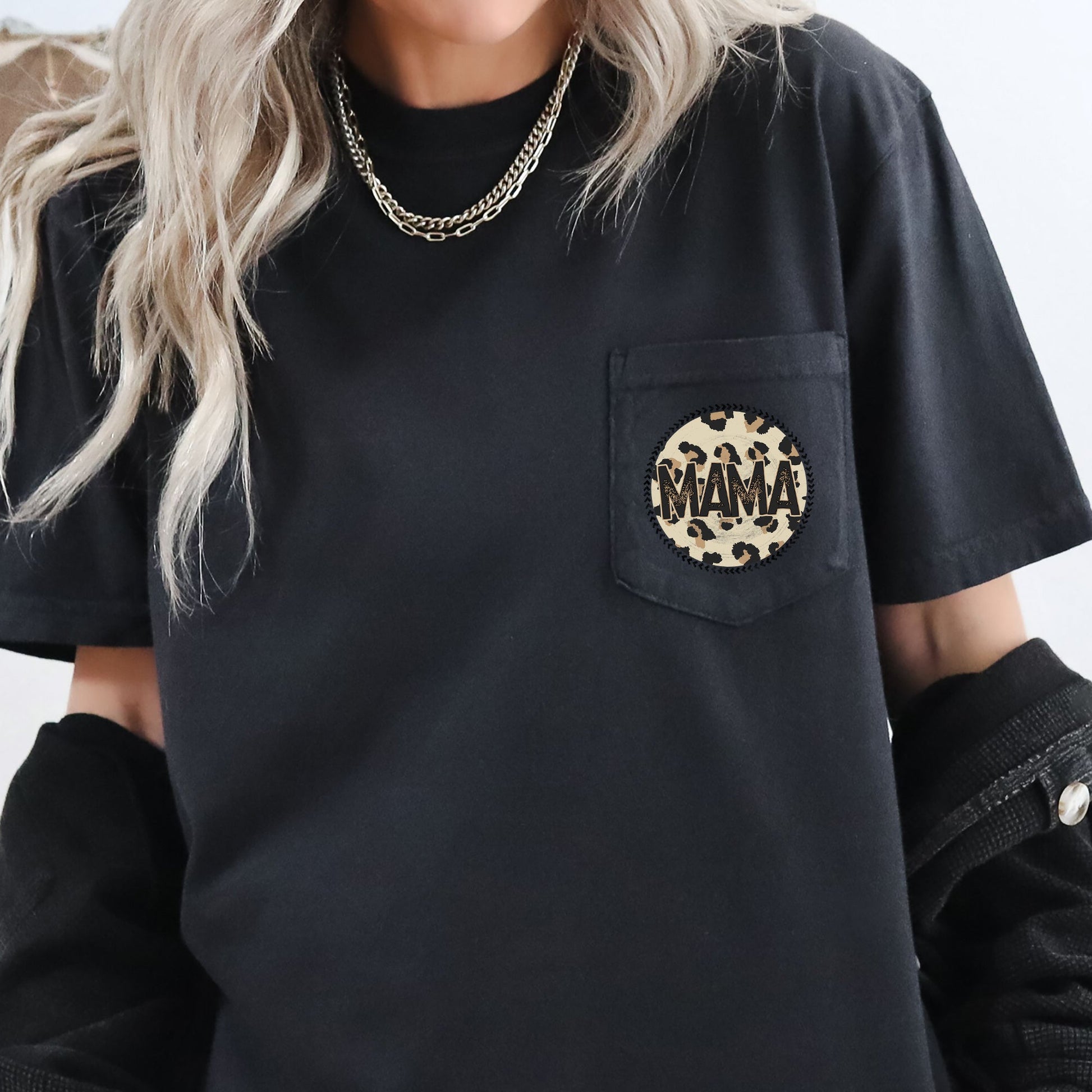 Mama, Retro, Western, Leopard Print, Circle, Pocket Tee Comfort Colors T-Shirt