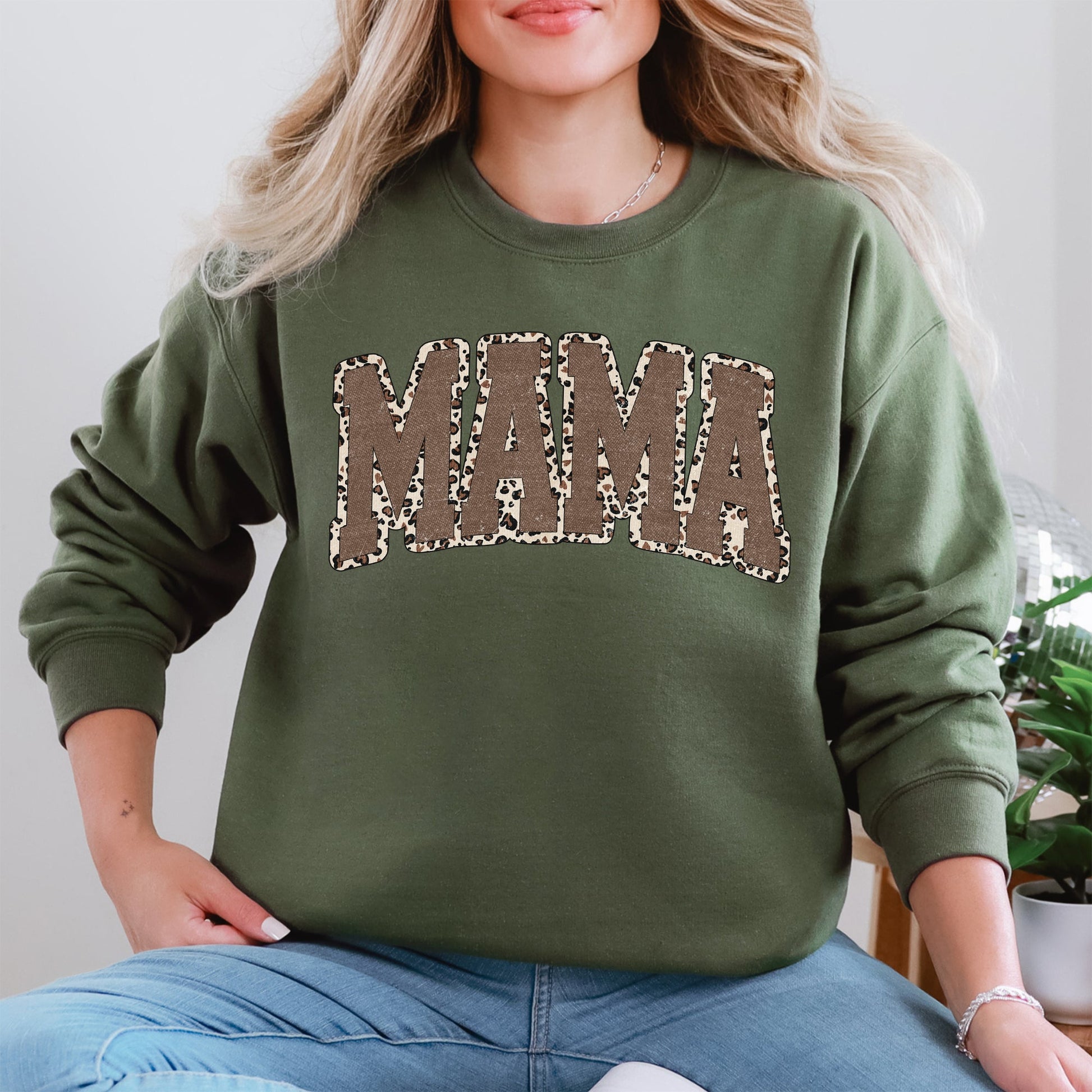 This stylish sweatshirt pairs effortlessly with your favorite jeans for a relaxed yet trendy outfit. It can also be layered over a casual shirt for an added layer of warmth and style, making it perfect for both casual outings and cozy nights in. Celebrate this Mother's Day with our Mama, Textured Leopard Print, Mother's Day, Retro, Varsity Sweatshirt, a heartfelt addition to any mom's wardrobe!