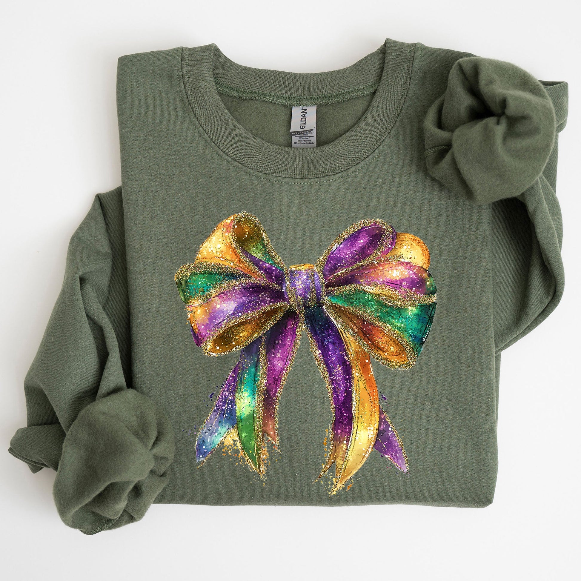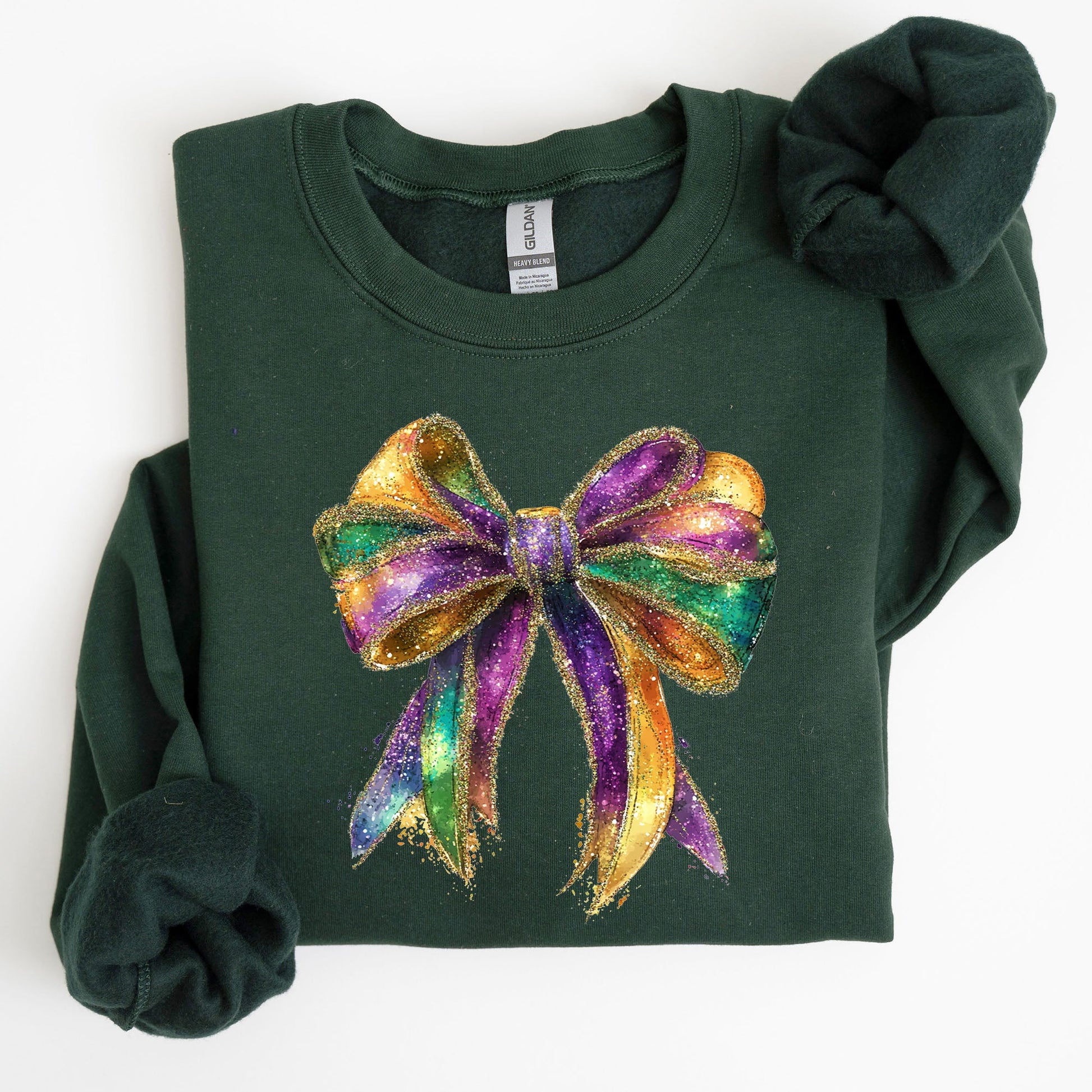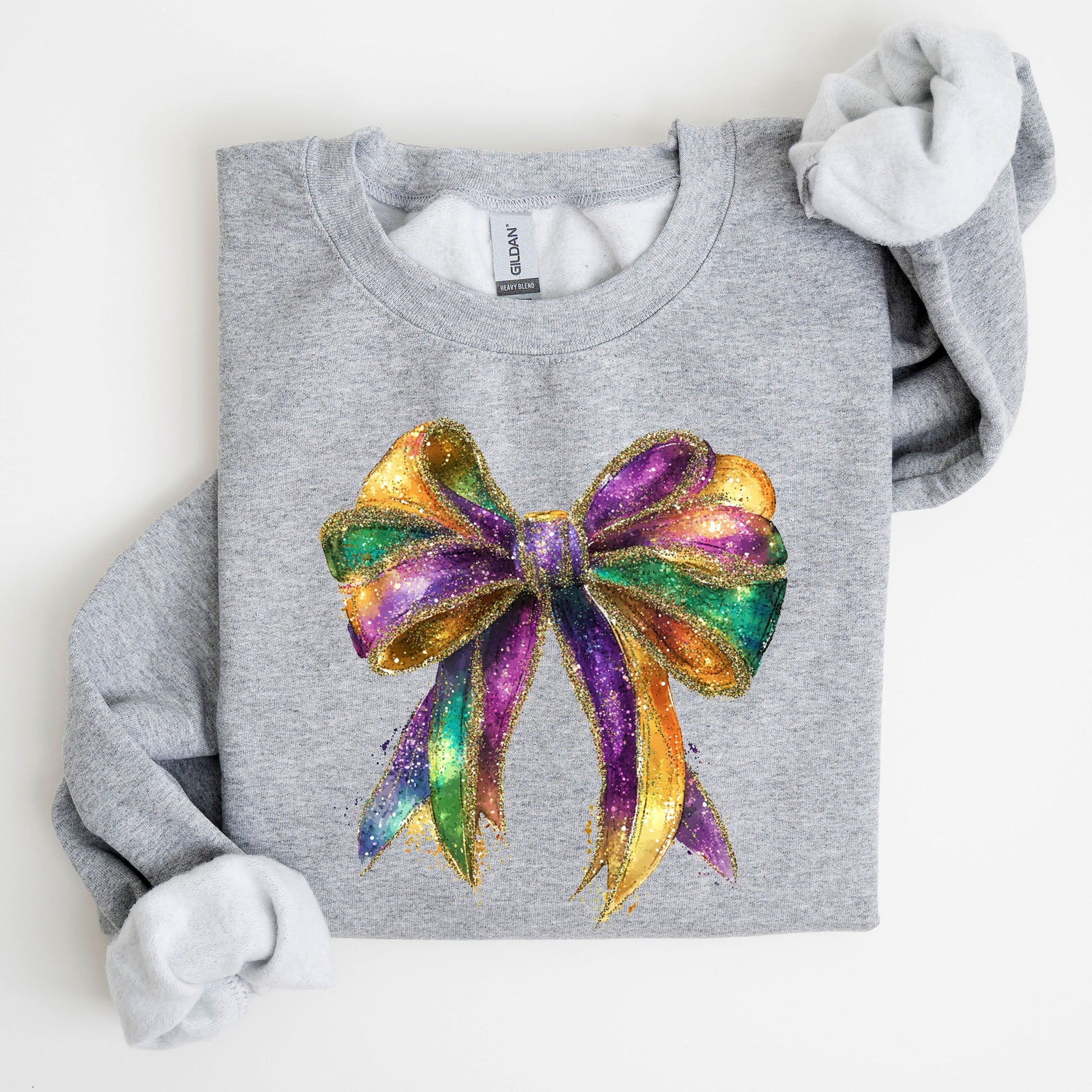 Mardi Gras, Bow, Coquette, Carnival, Fleur de Lis, Fat Tuesday, Parade Sweatshirt