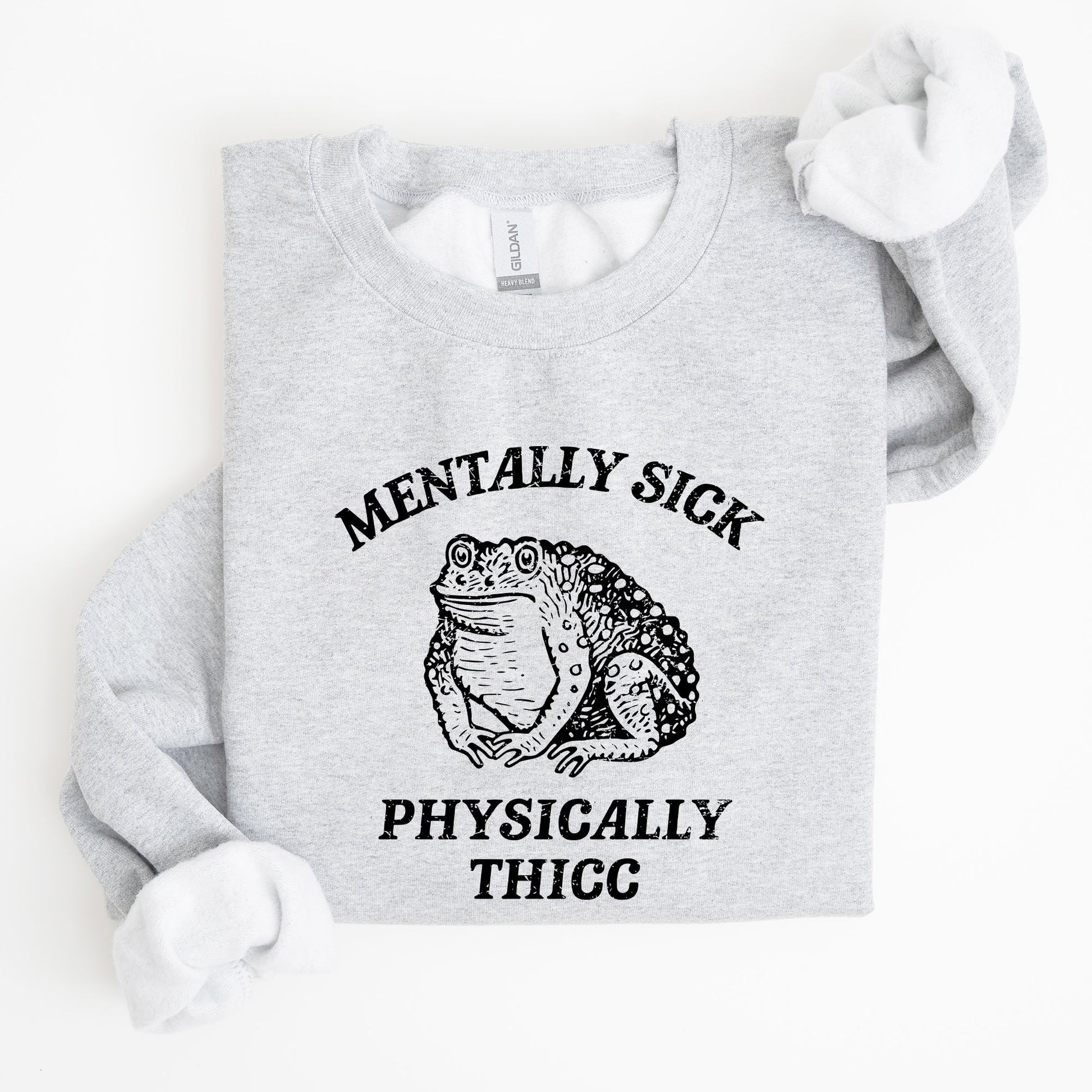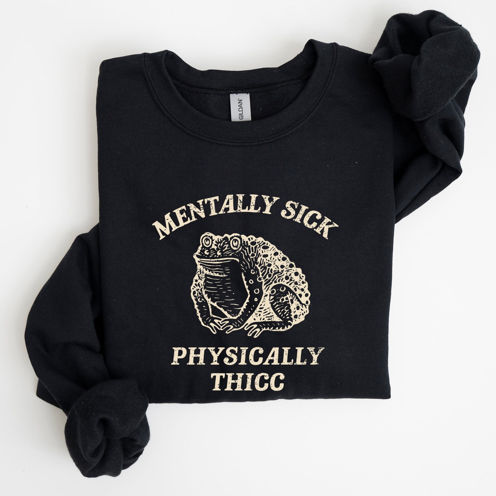 Mentally Sick, Physically Thicc, Frog, Toad, Meme, Aesthetic, Funny Sweatshirt