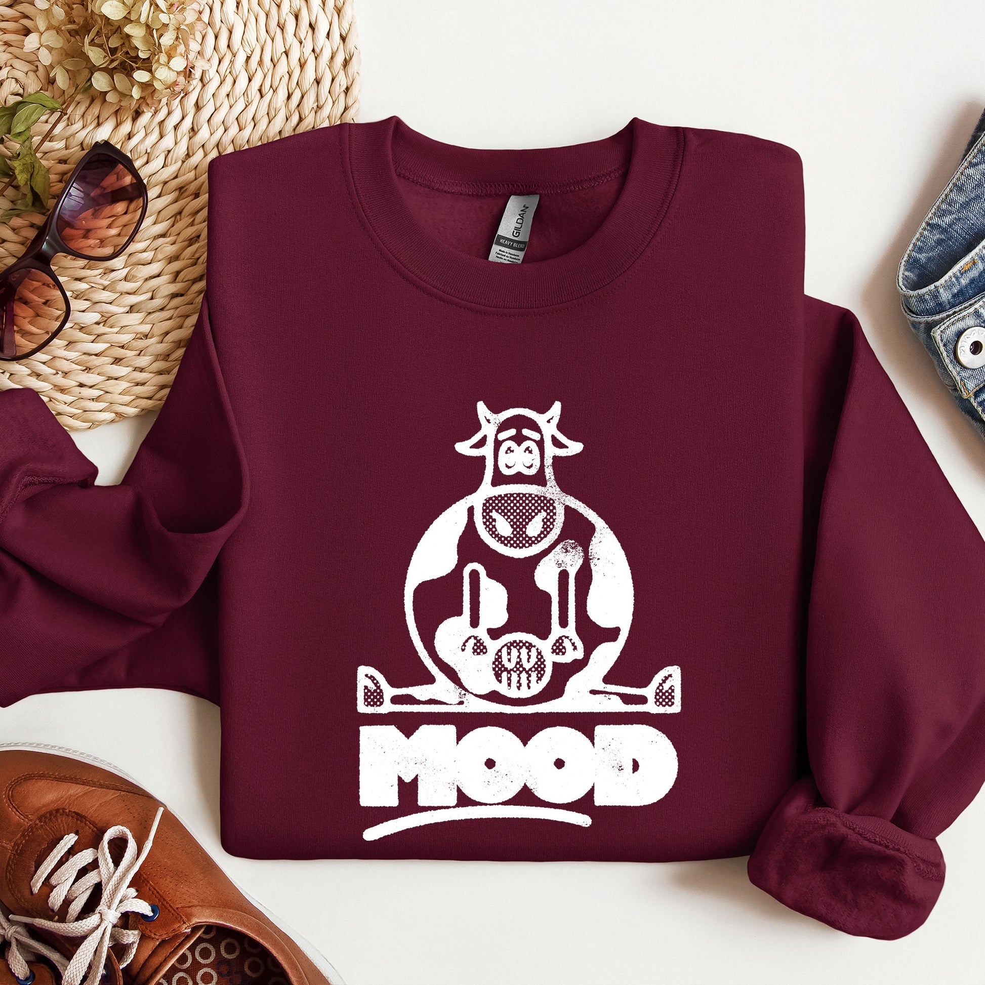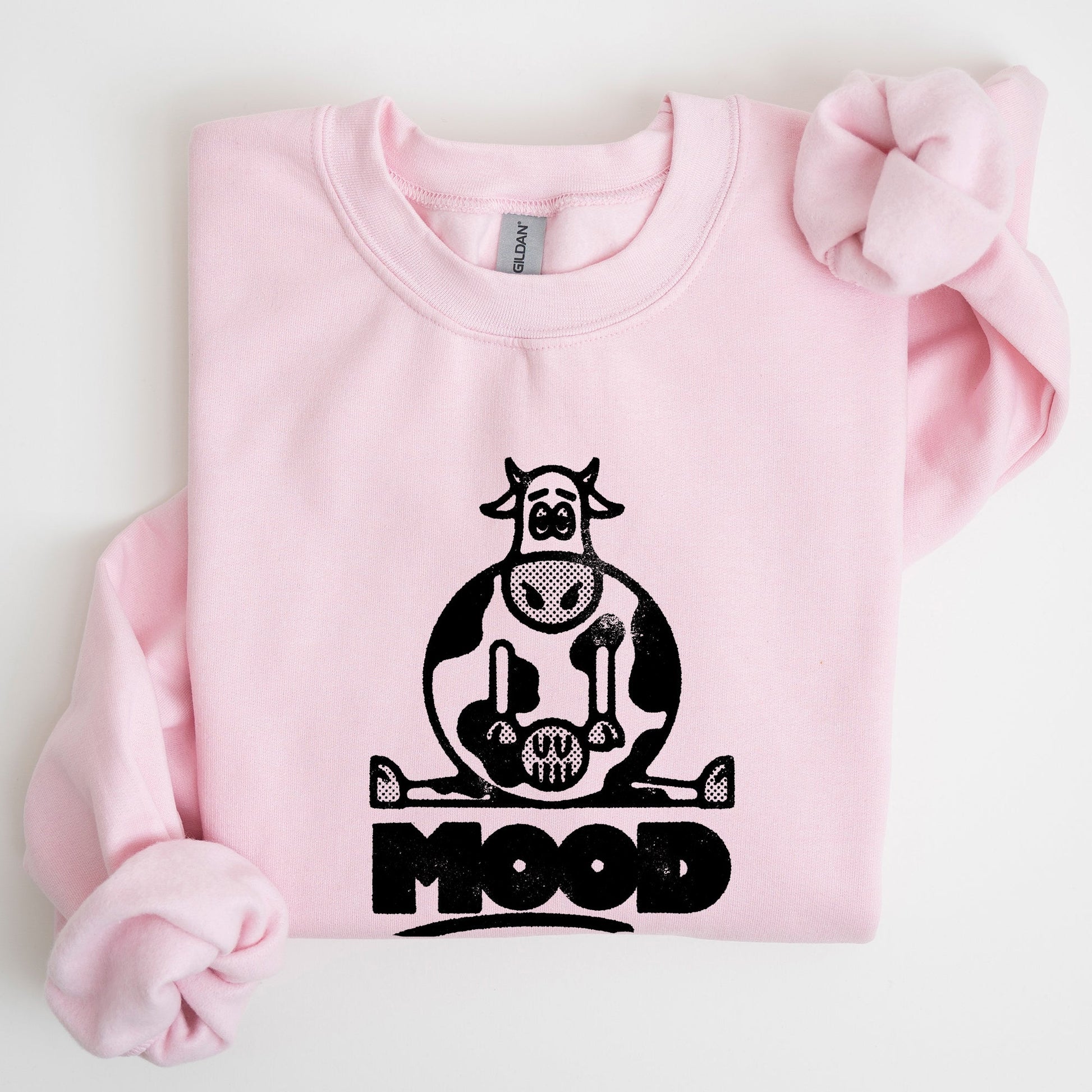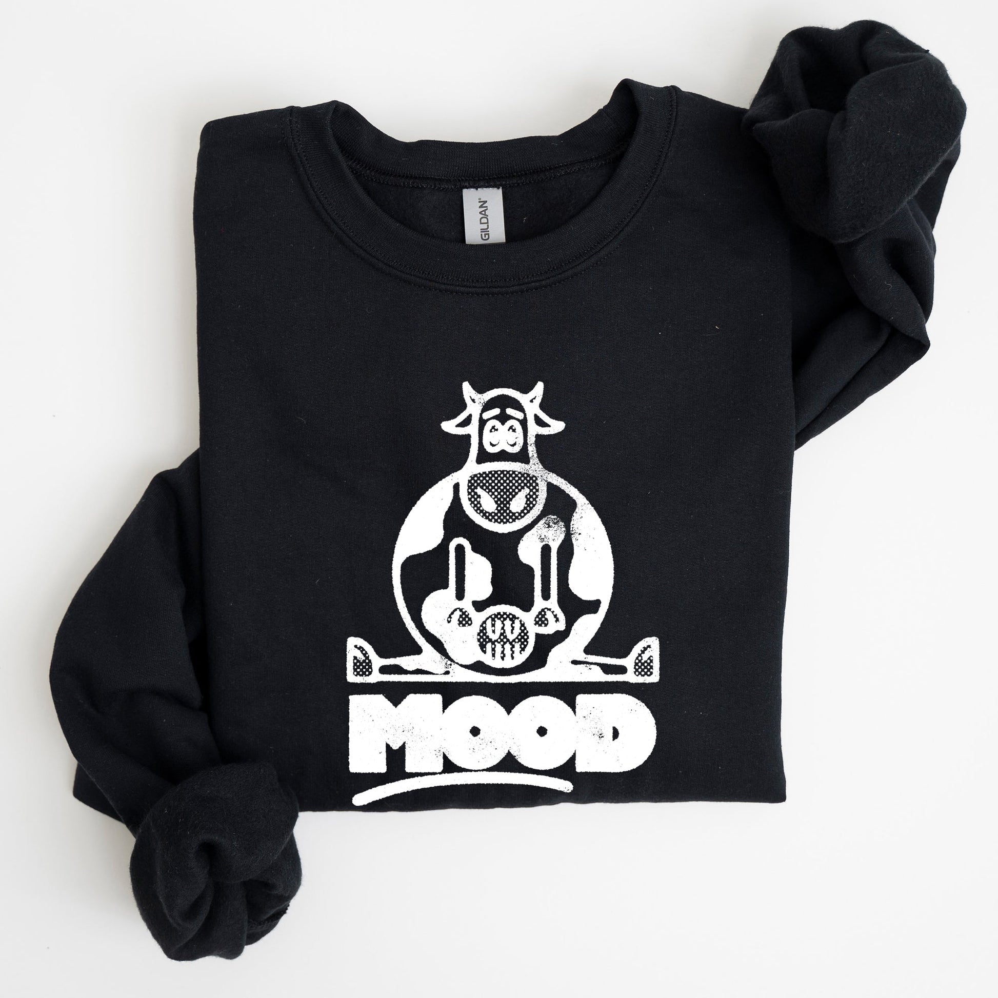 This Moo'd, Cow, Funny, Moody, Mental Health, Positivity Sweatshirt is perfect for pairing with jeans for a relaxed, trendy look or can be layered over your favorite shirts for added style. Ideal for casual outings, cozy nights in, or simply spreading positivity wherever you go!