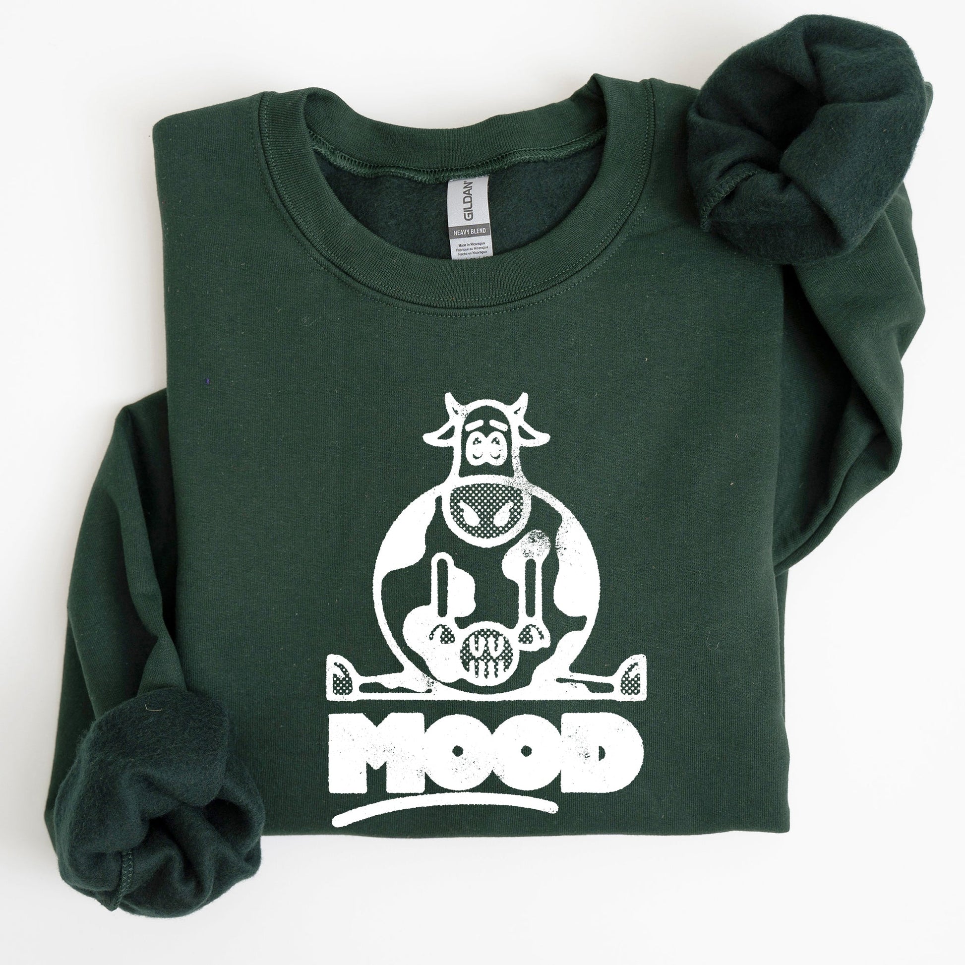 Moo'd, Cow, Funny, Moody, Mental Health, Positivity Sweatshirt