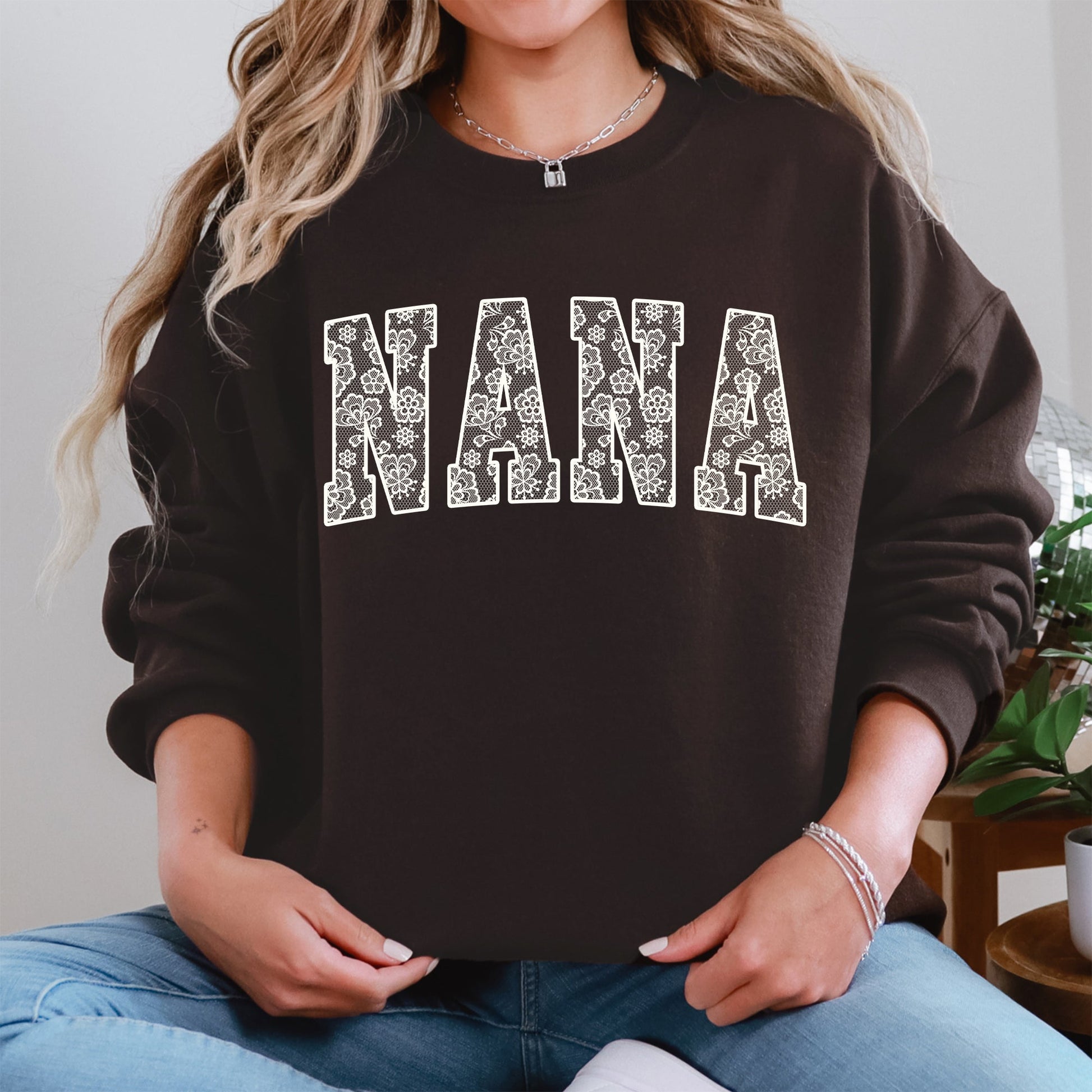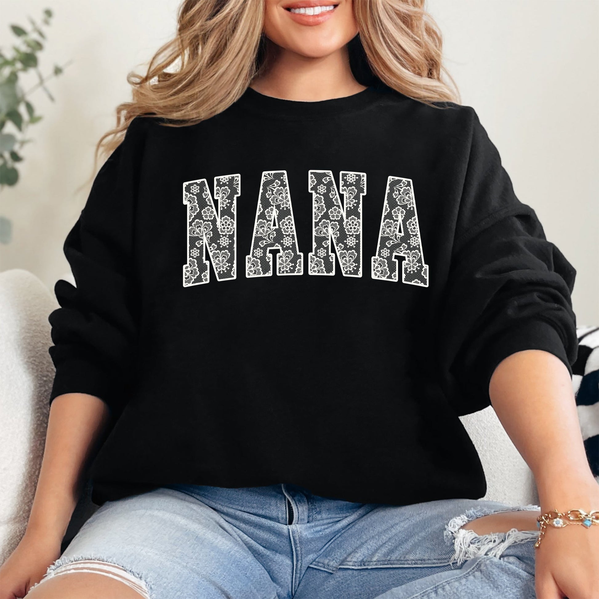 Nana, Faux Lace, Coquette, Varsity, Mother's Day Sweatshirt