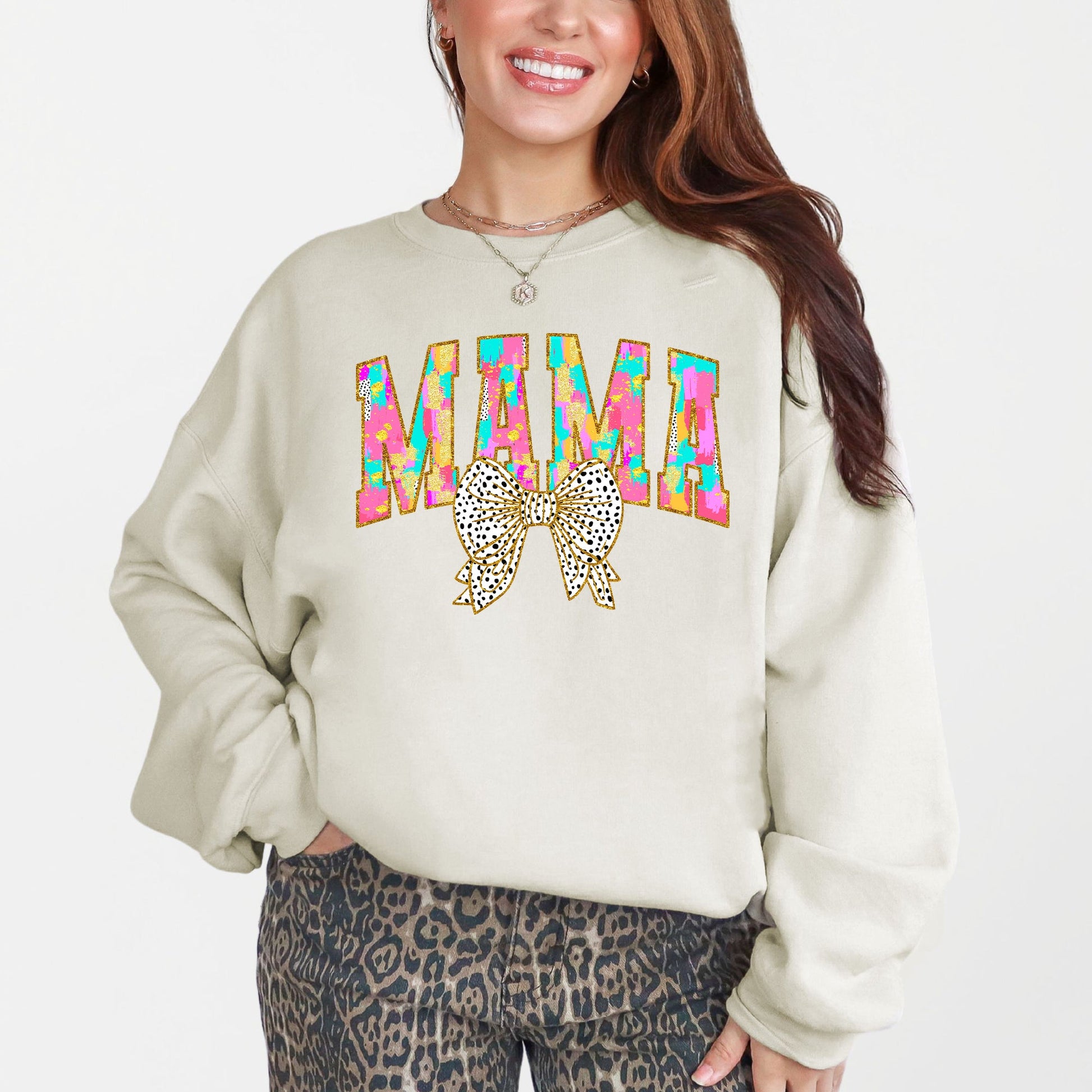 Embrace your unique style with the Painted Mama, Dalmatian Print, Bow, Ribbon, Coquette, Mother's Day Sweatshirt. This sweatshirt is not just an article of clothing; it's a statement piece designed for comfort and creativity. With its striking dalmatian print and charming bow ribbon detail, it captures the essence of playful elegance, making it the perfect gift for Mother's Day or any occasion that celebrates the special women in your life.