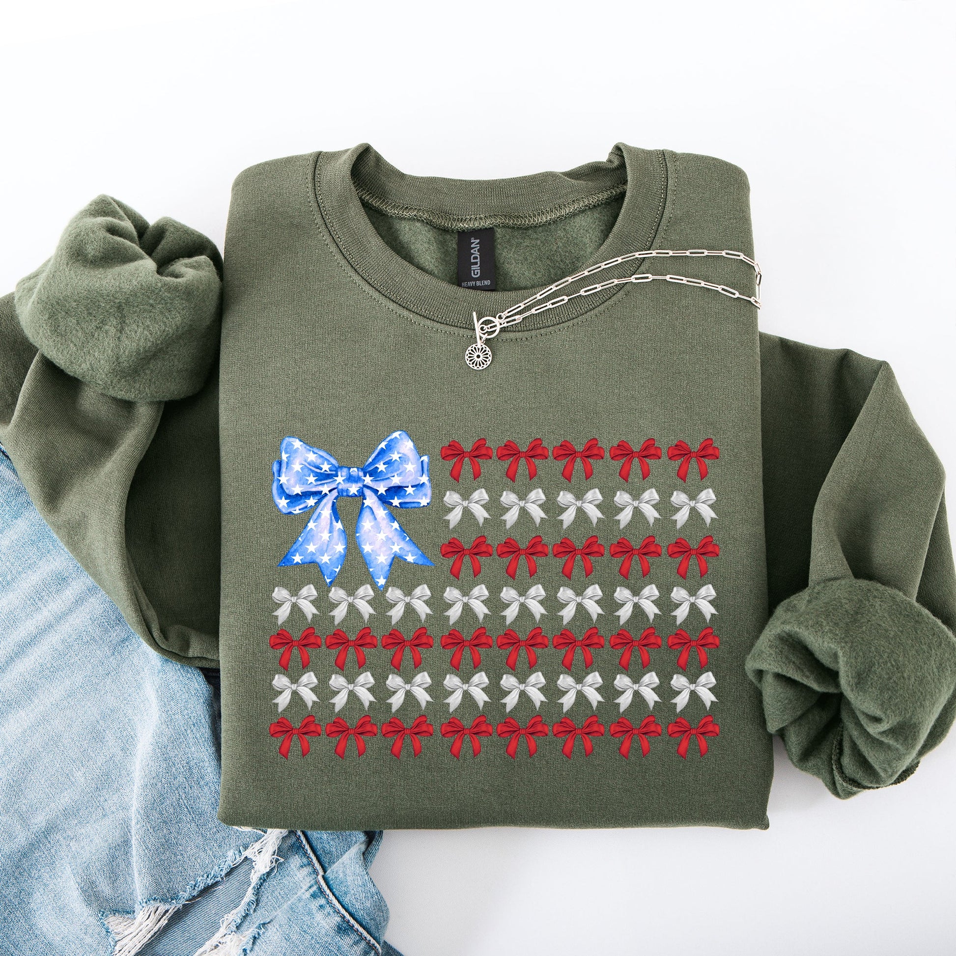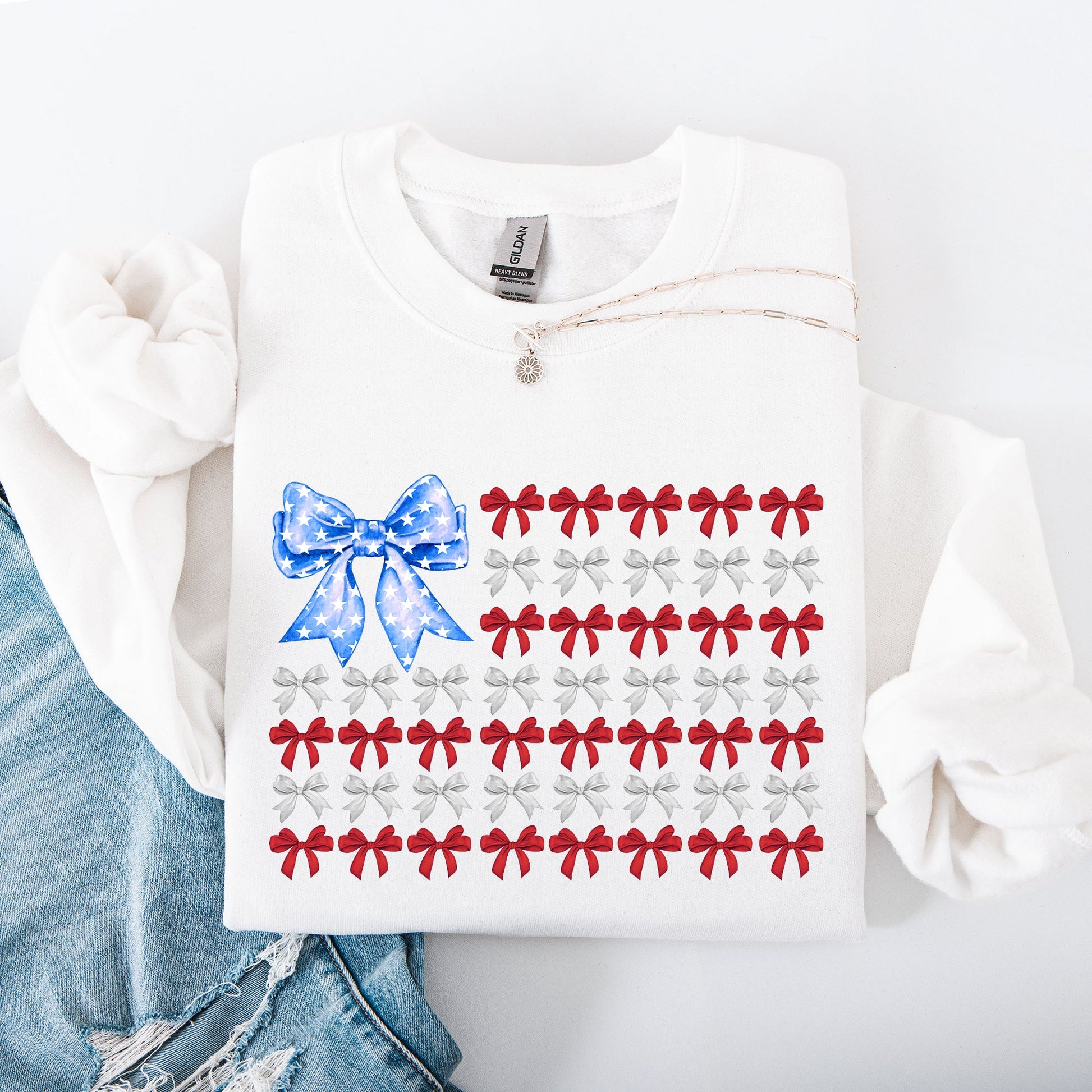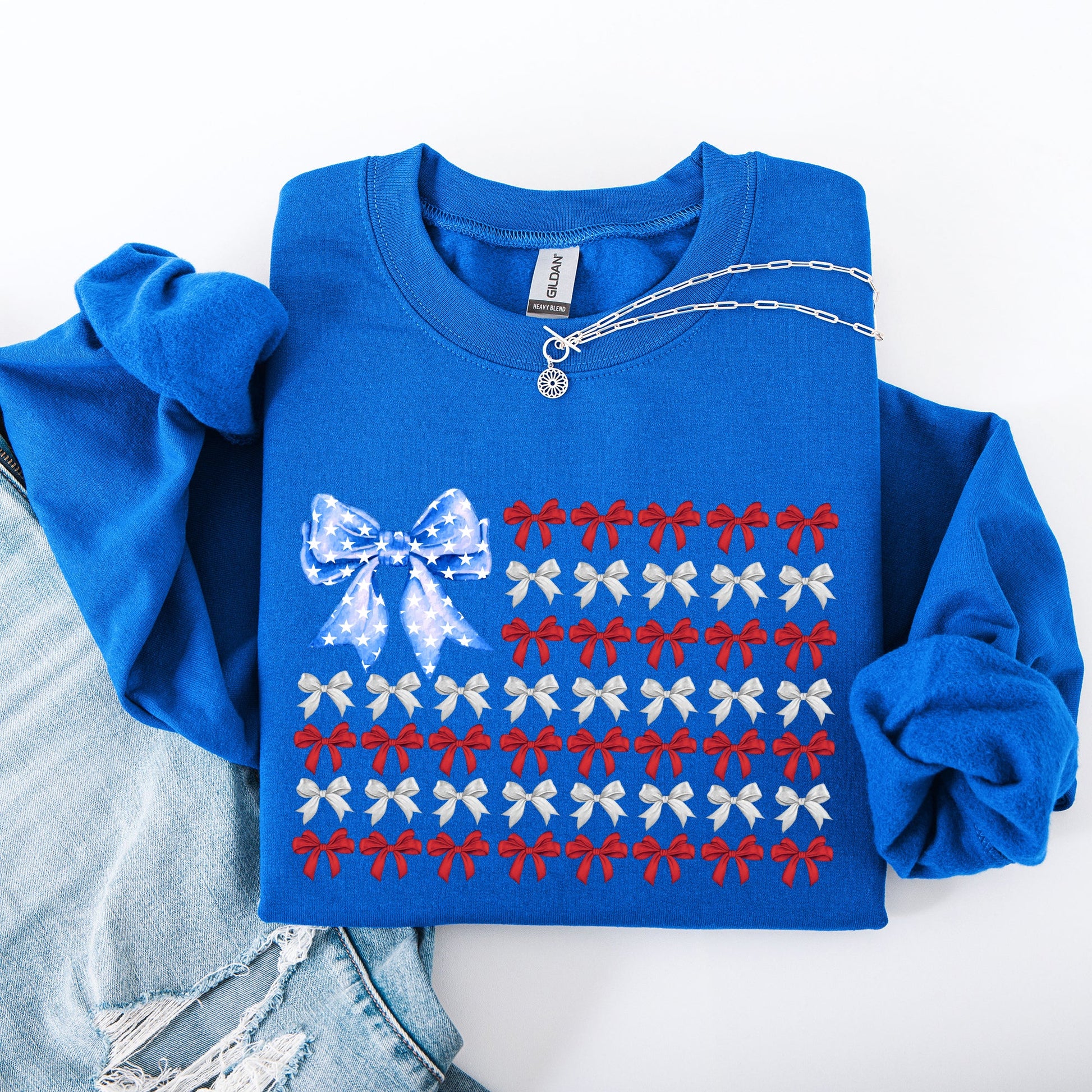 Patriotic Bows, Flag, USA, Coquette, Ribbons, America, 4th of July Sweatshirt