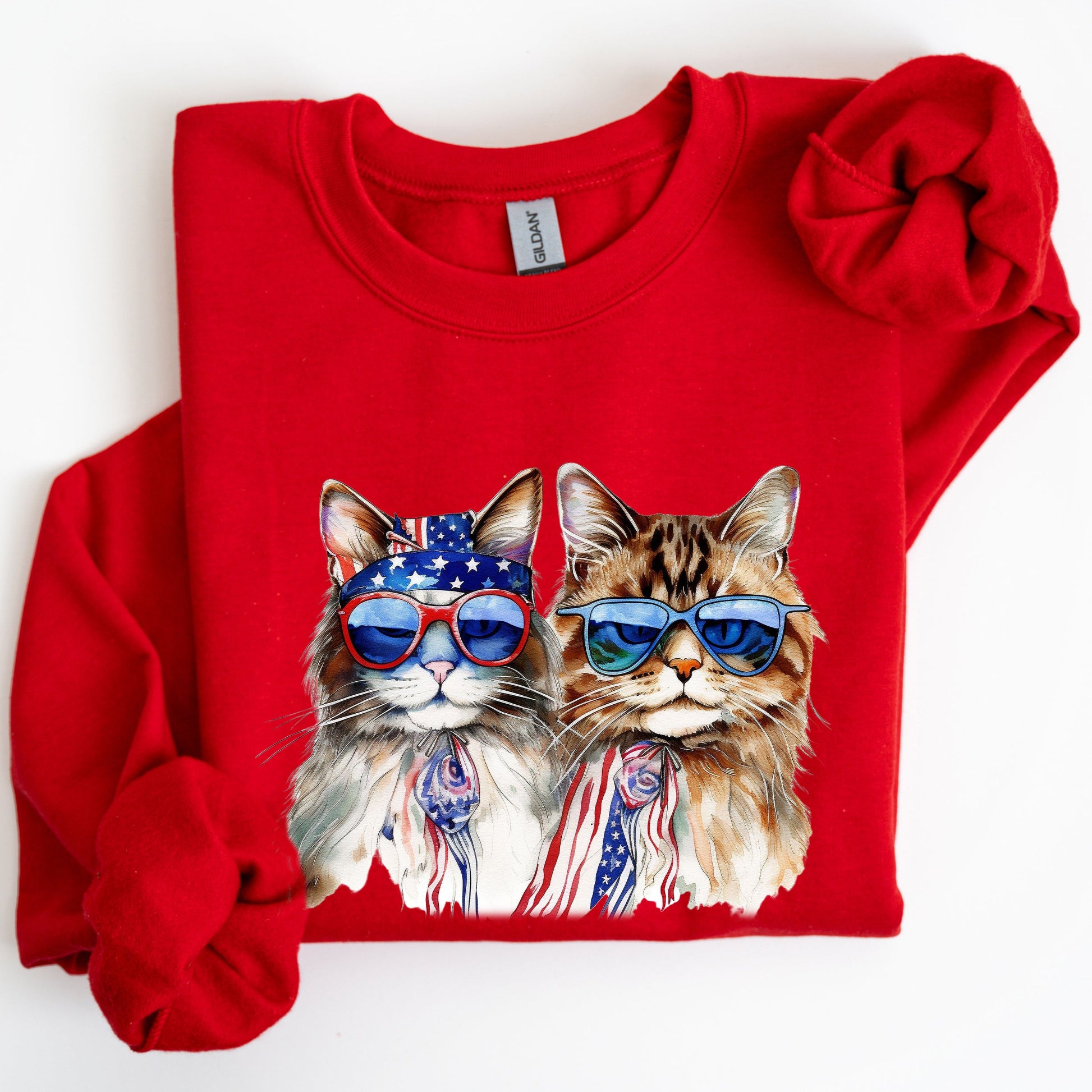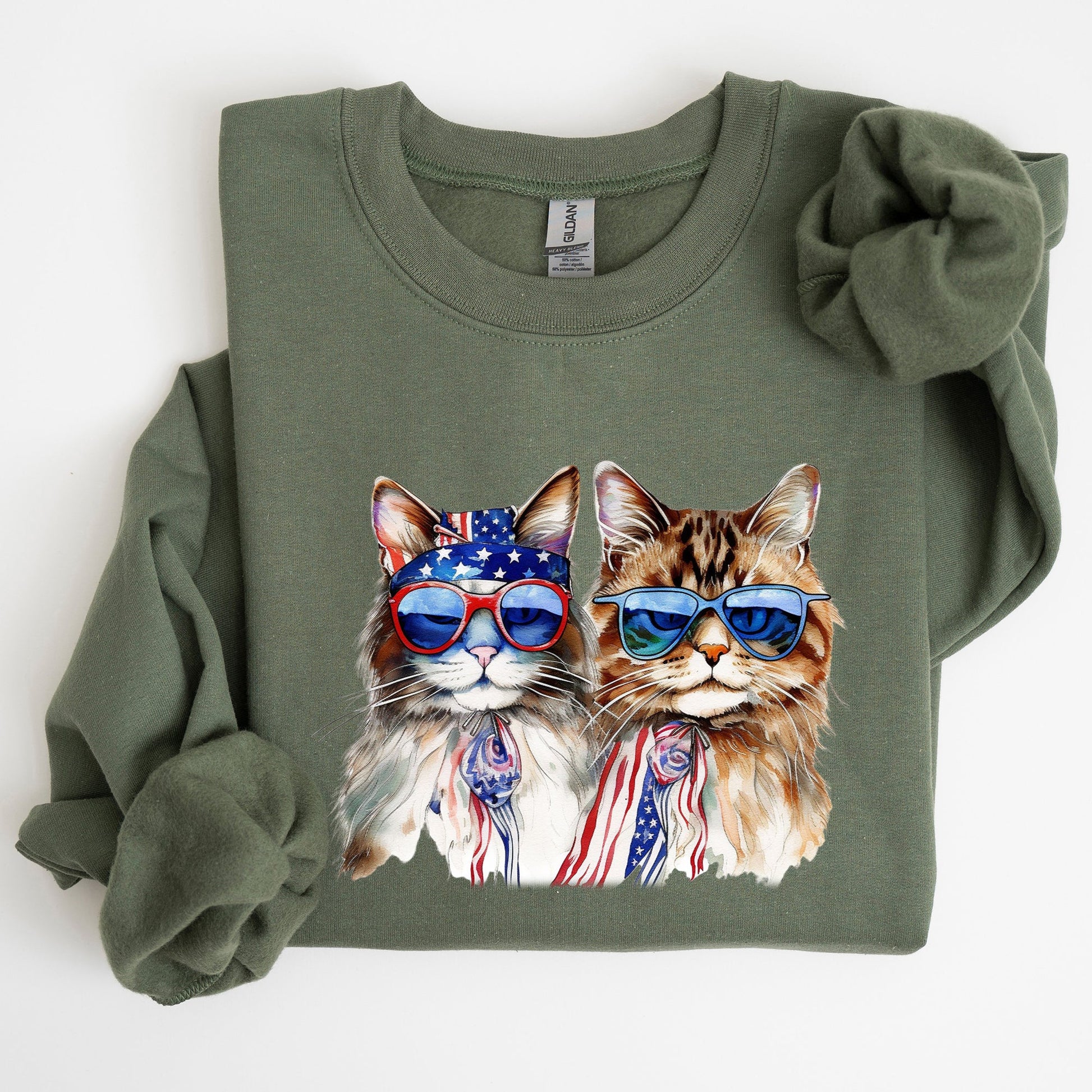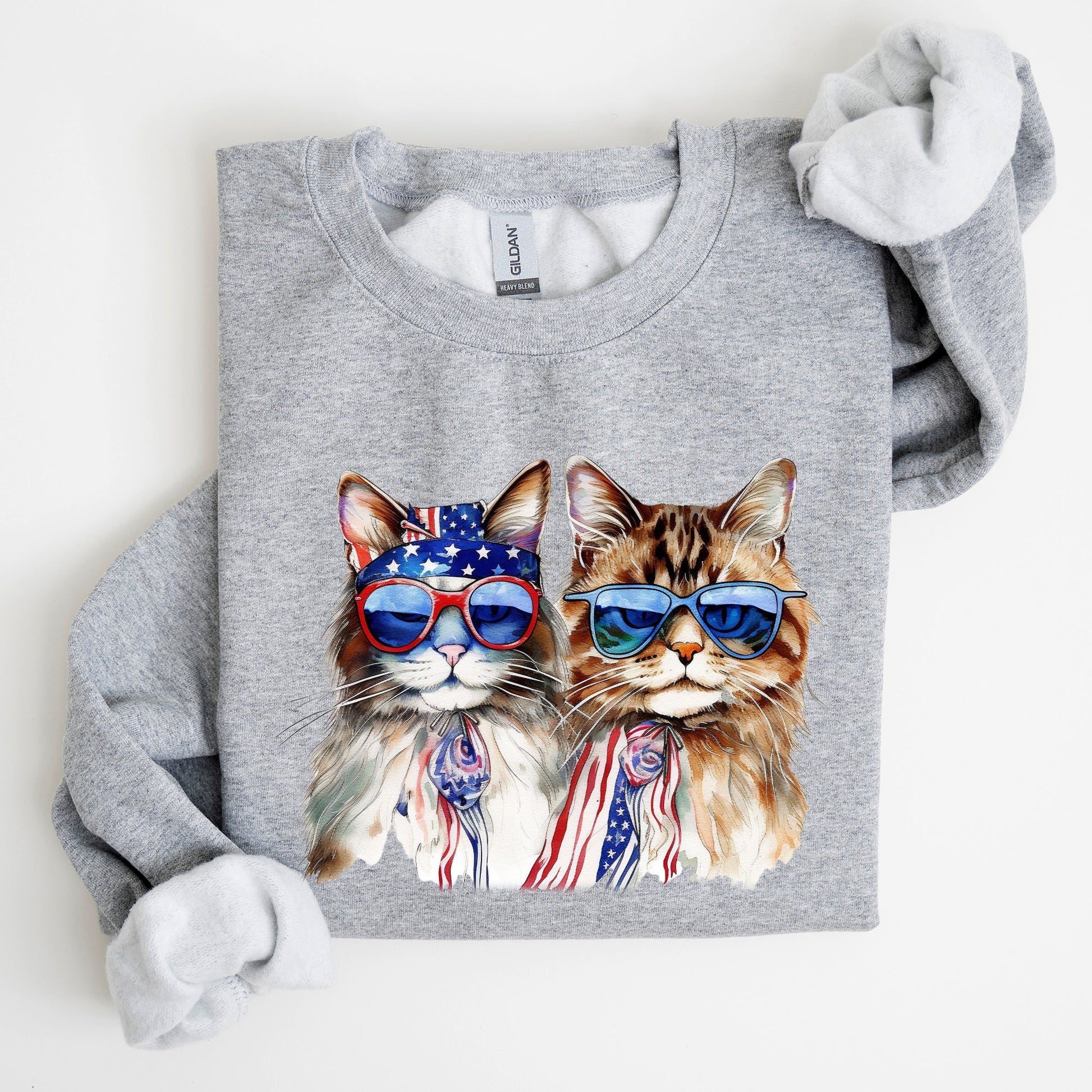 Patriotic Cats, Hippie, Funny, 4th of July Sweatshirt