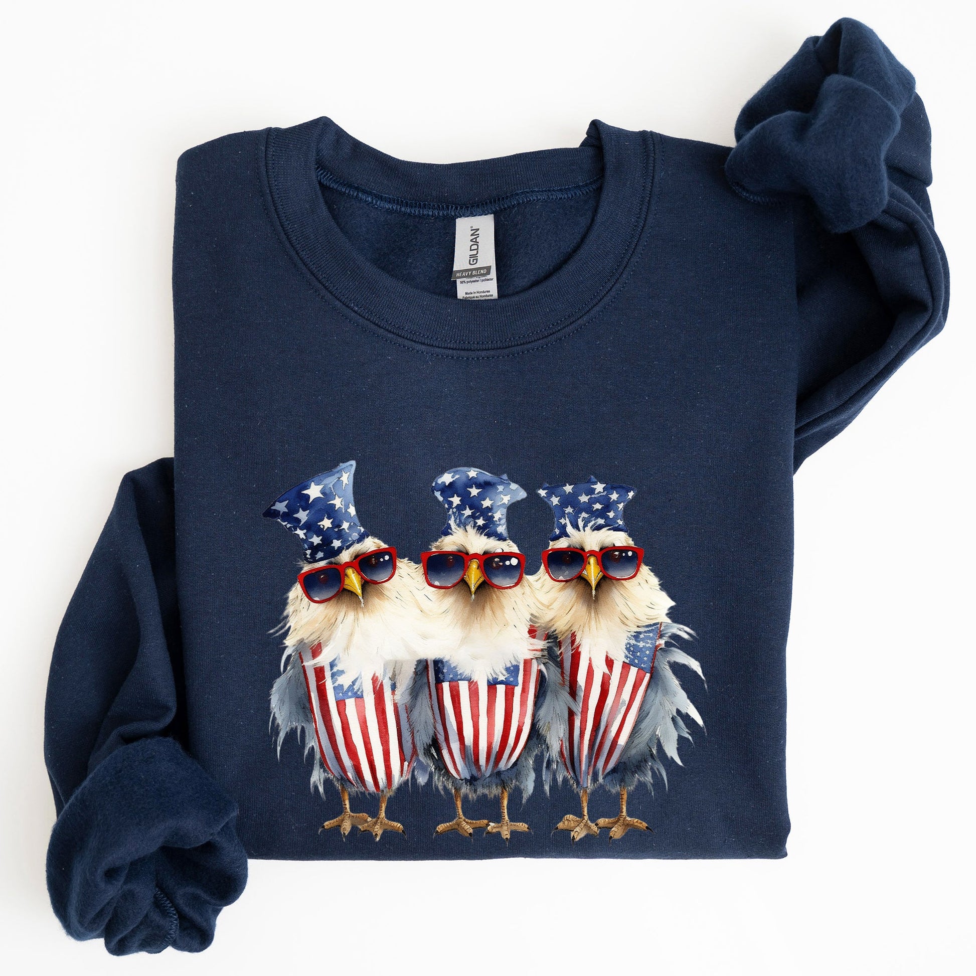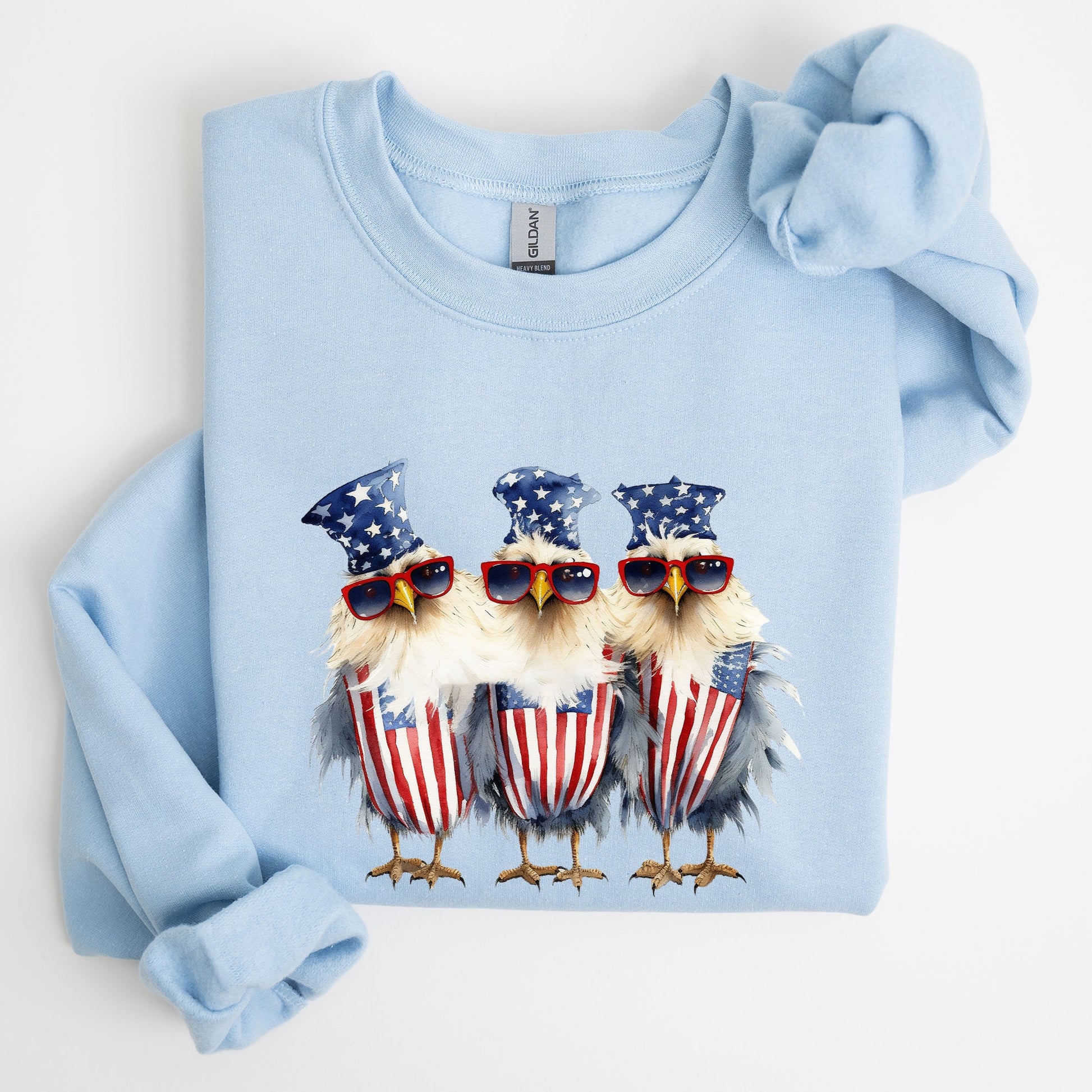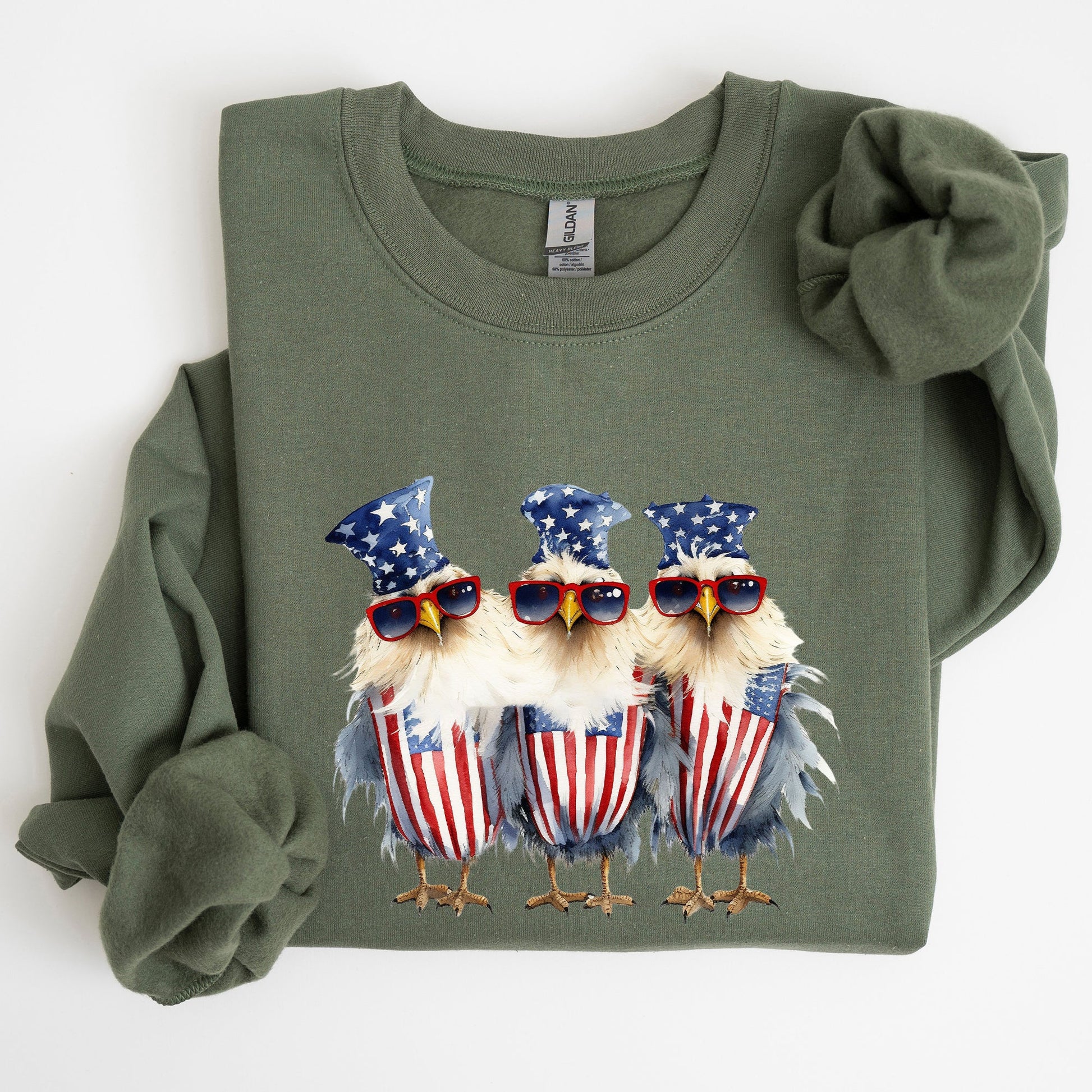 Patriotic Chickens, Hippie, Funny, 4th of July Sweatshirt