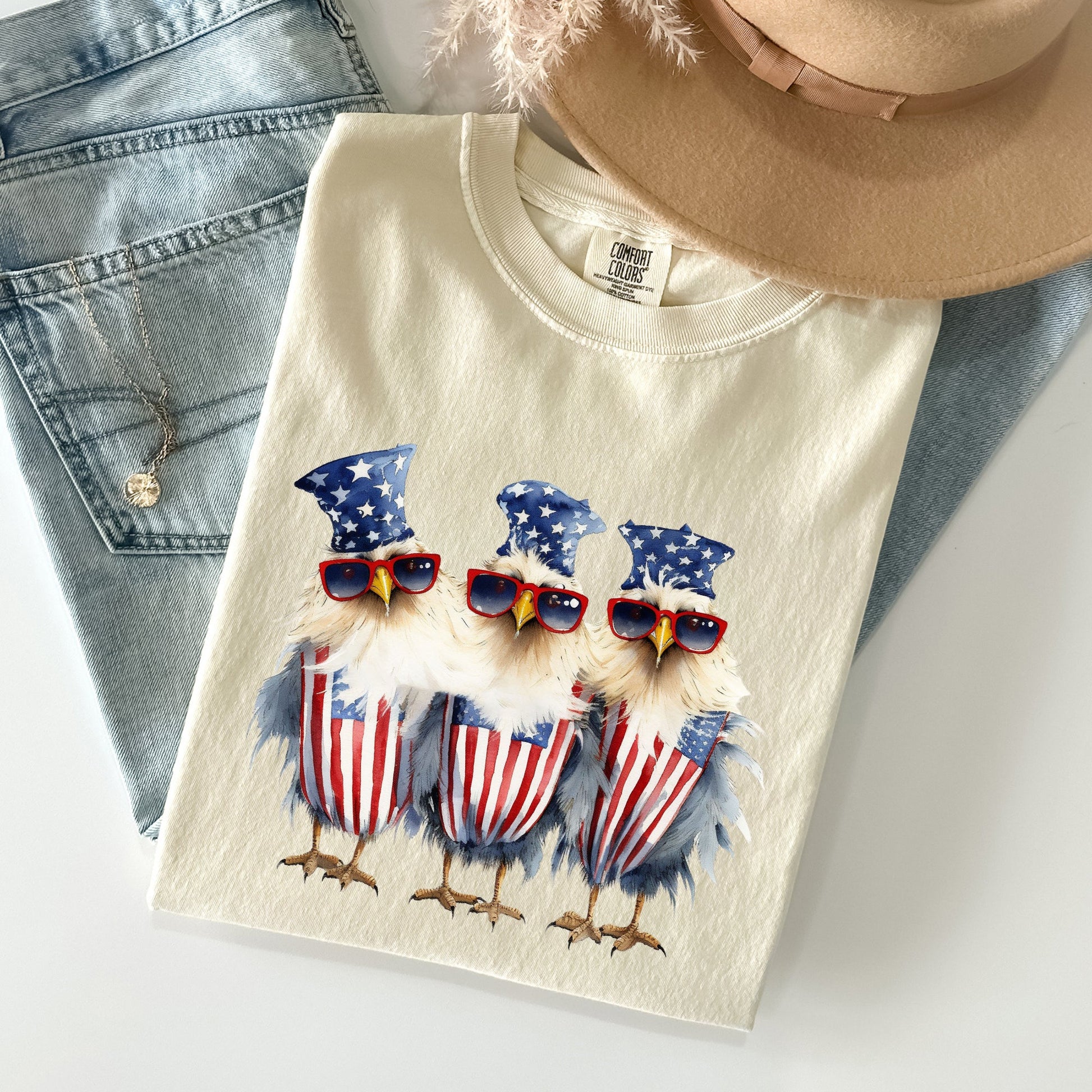 Patriotic Chickens, Hippie, Funny, Patriotic, 4th of Tshirt Comfort Colors T-Shirt