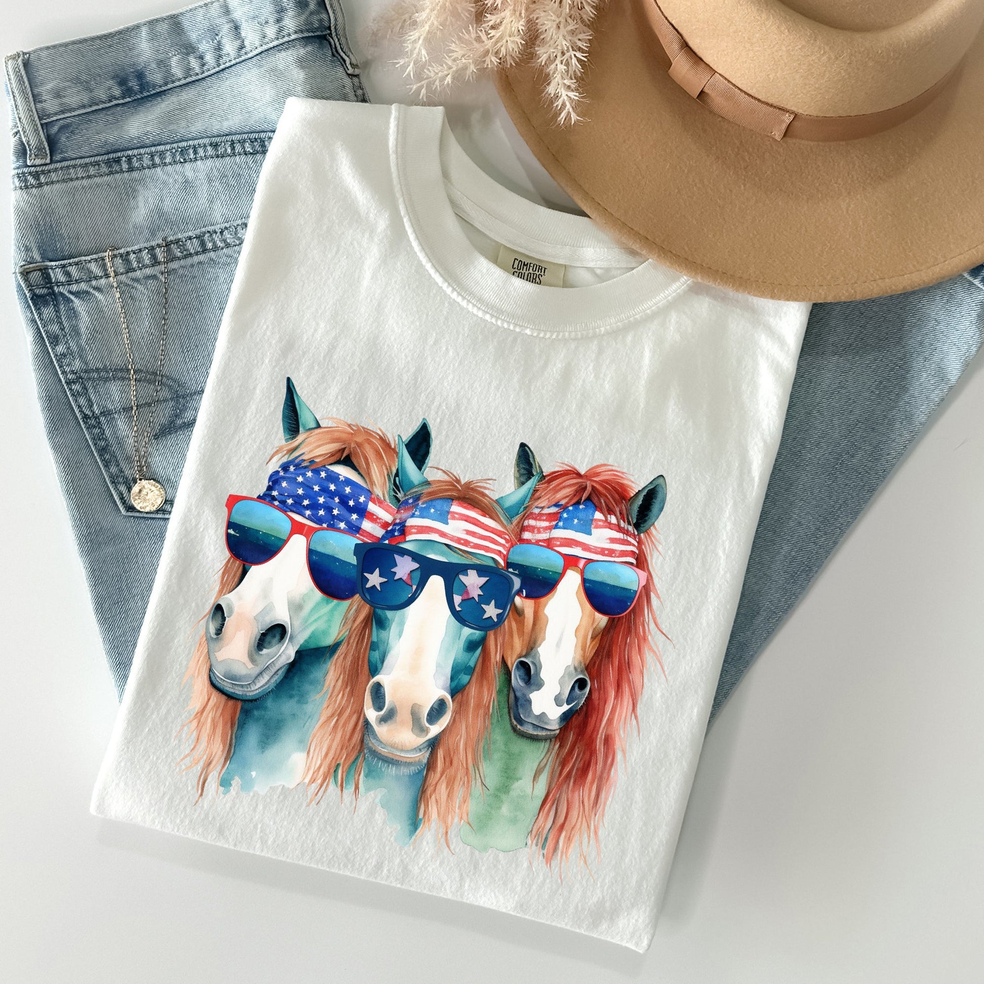 Patriotic Horses, Hippie Funny, Patriotic 4th of July Tshirt Comfort Colors T-Shirt