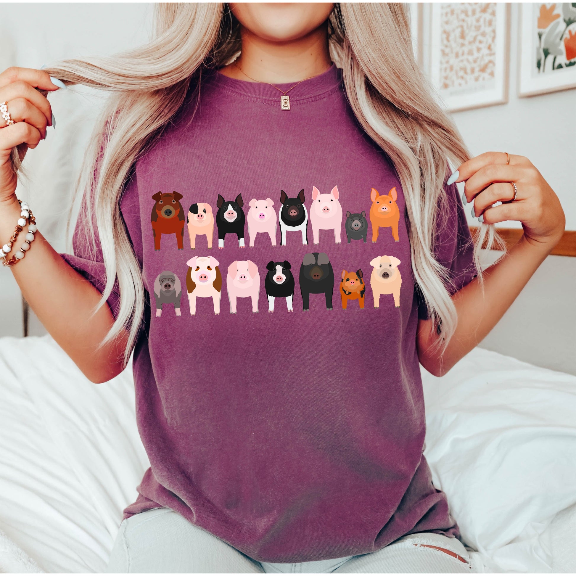 Pig Lovers Comfort Color Tees, Farm Animal Shirts, Illustration, Breeds, Pet Comfort Colors T-Shirt