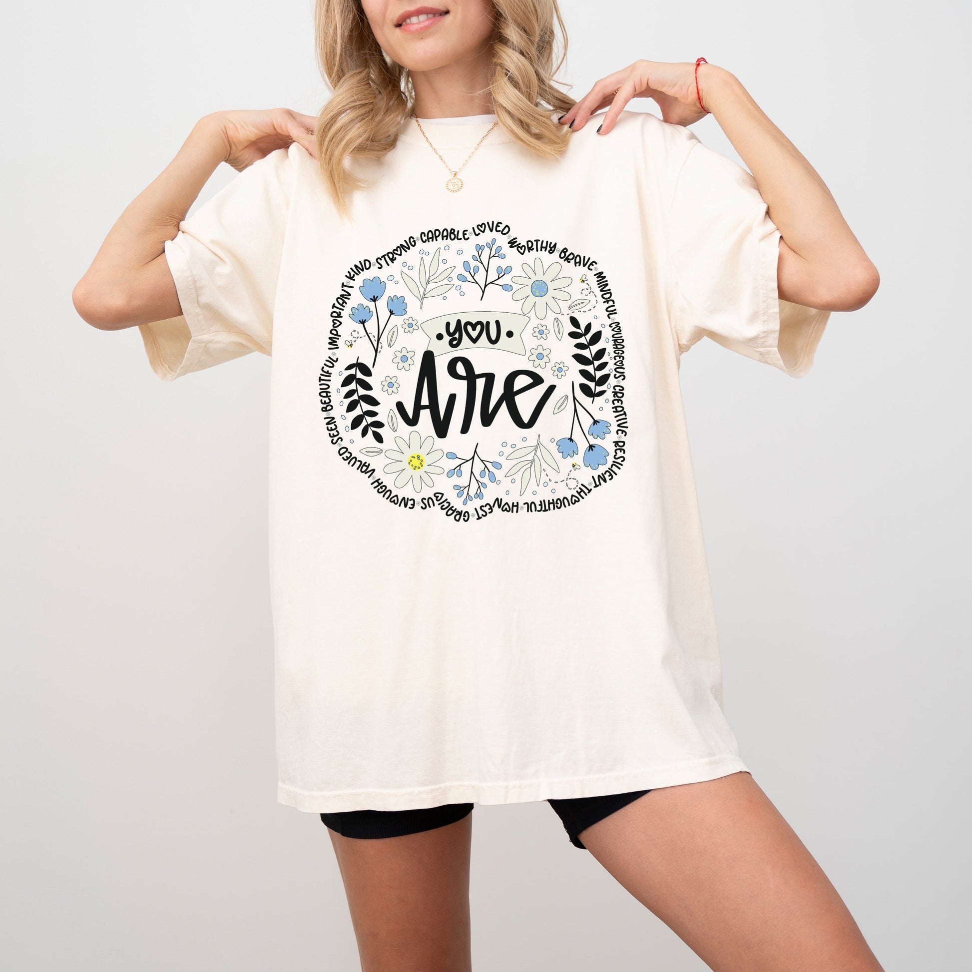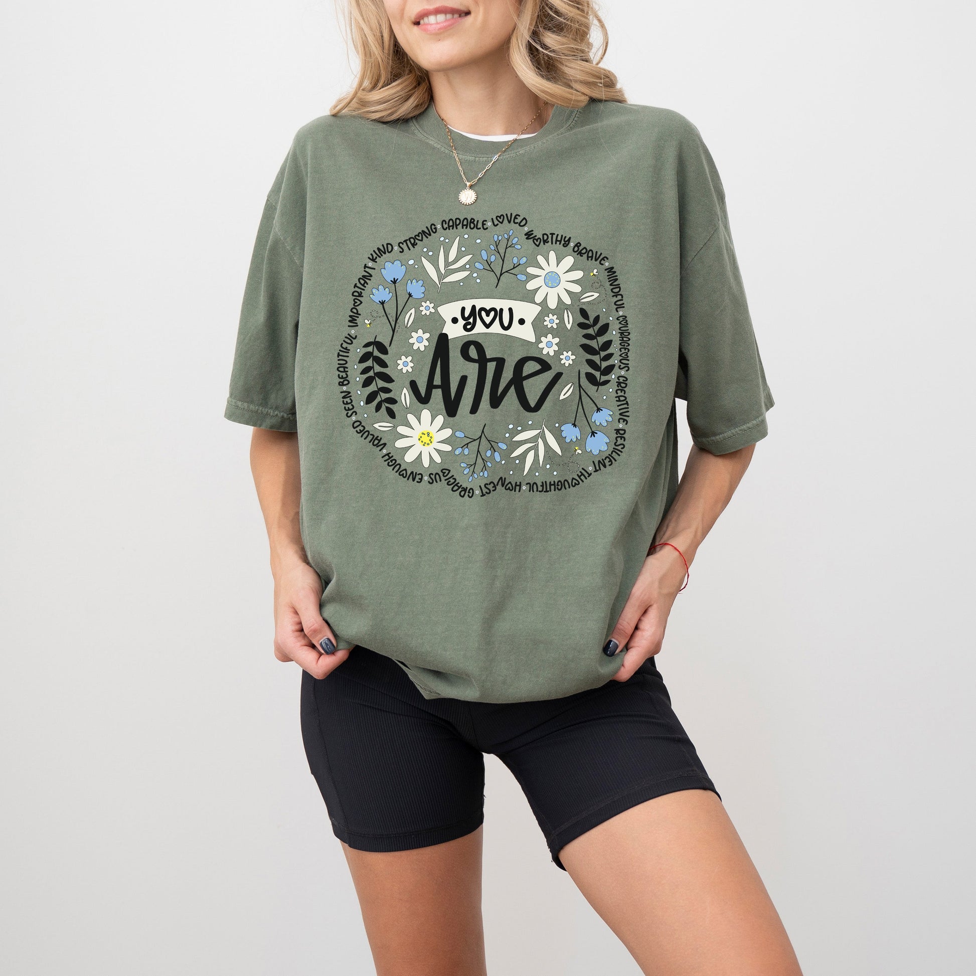 Positivity, You Are Enough, Flowers, Retro, Mental Health, Self Care, Tshirt Comfort Colors T-Shirt