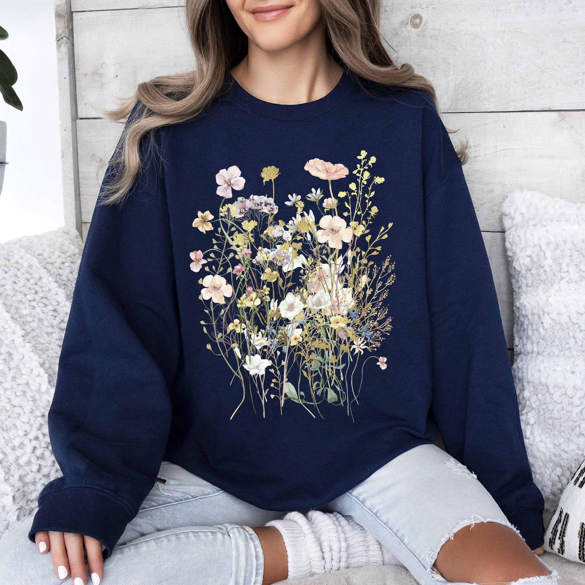 The Pressed Flower Bouquet Sweatshirt pairs effortlessly with jeans for a relaxed yet trendy look. It can also be layered over your favorite shirts for added style, making it an ideal choice for both casual outings and cozy evenings at home. Embrace the beauty of nature and express your individuality with this exceptional sweatshirt!