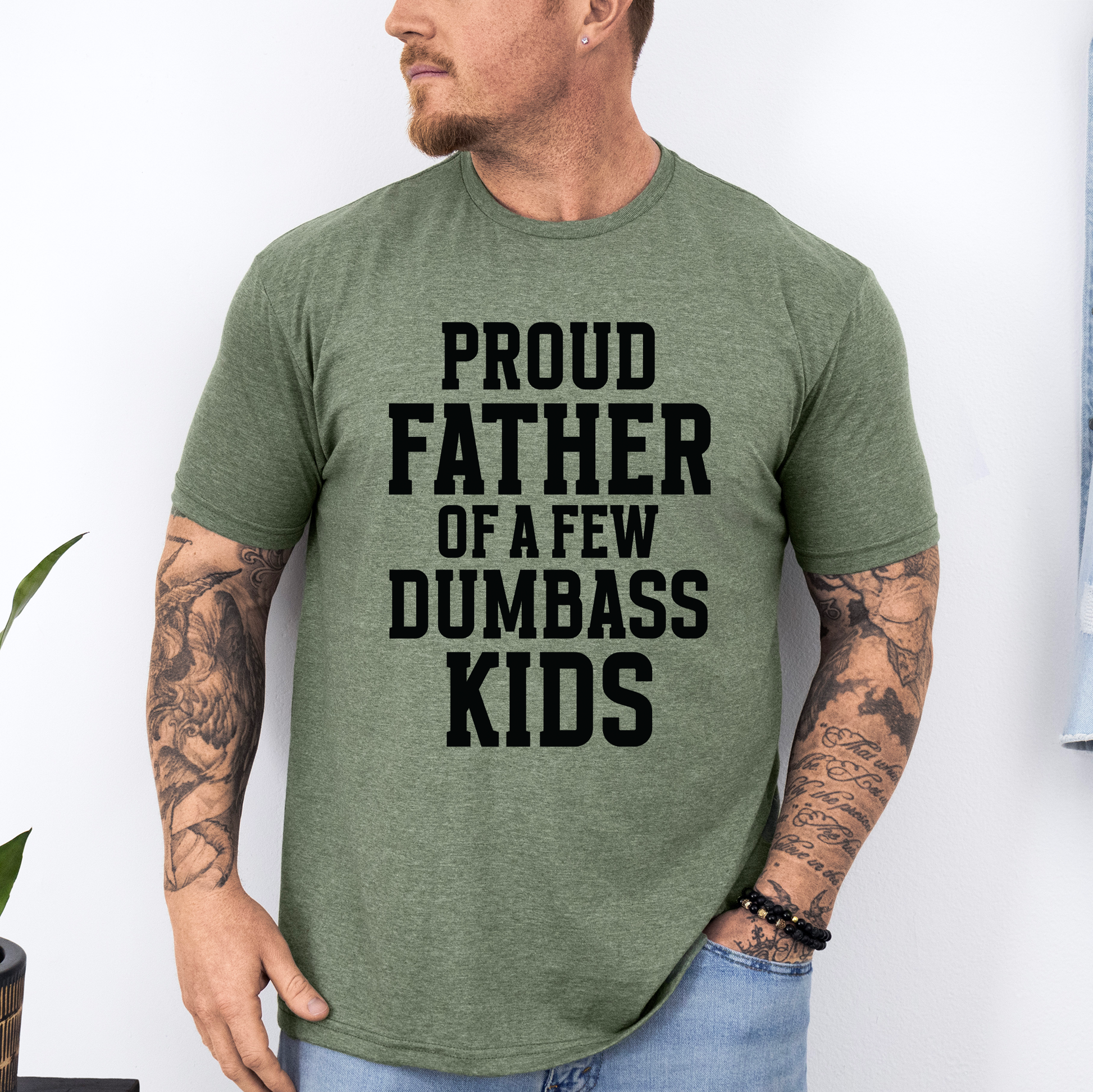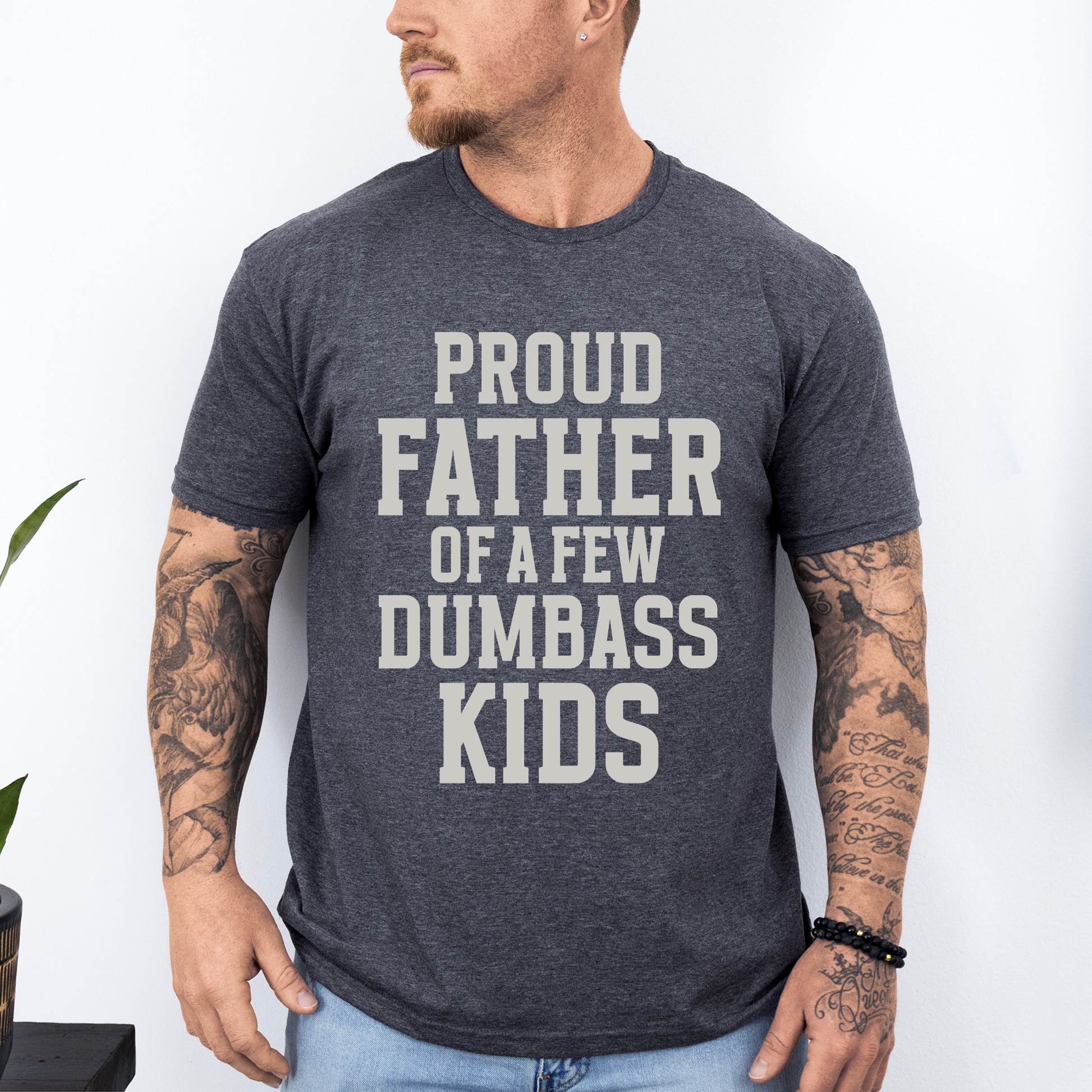 - Humorous Design: Adorned with the playful phrase "Proud Father Of A Few Dumbass Kids," this shirt is a fun statement piece celebrating dad humor.