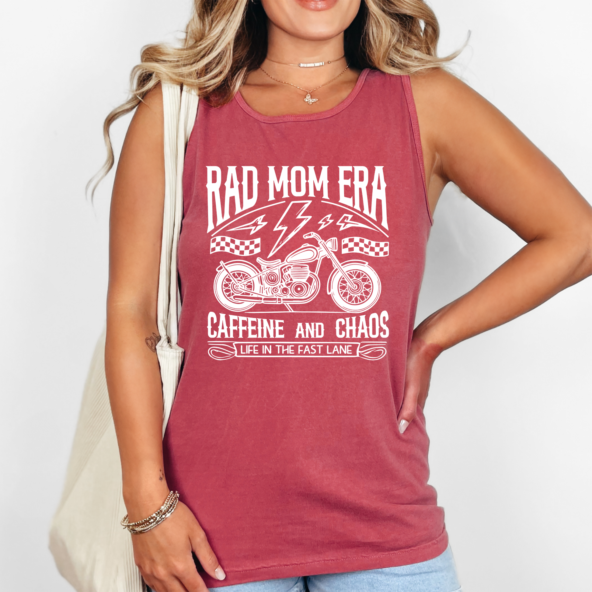 Rad Mom Era, Caffeine and Chaos, Sassy, Mama, Mother Comfort Colors Tank Top