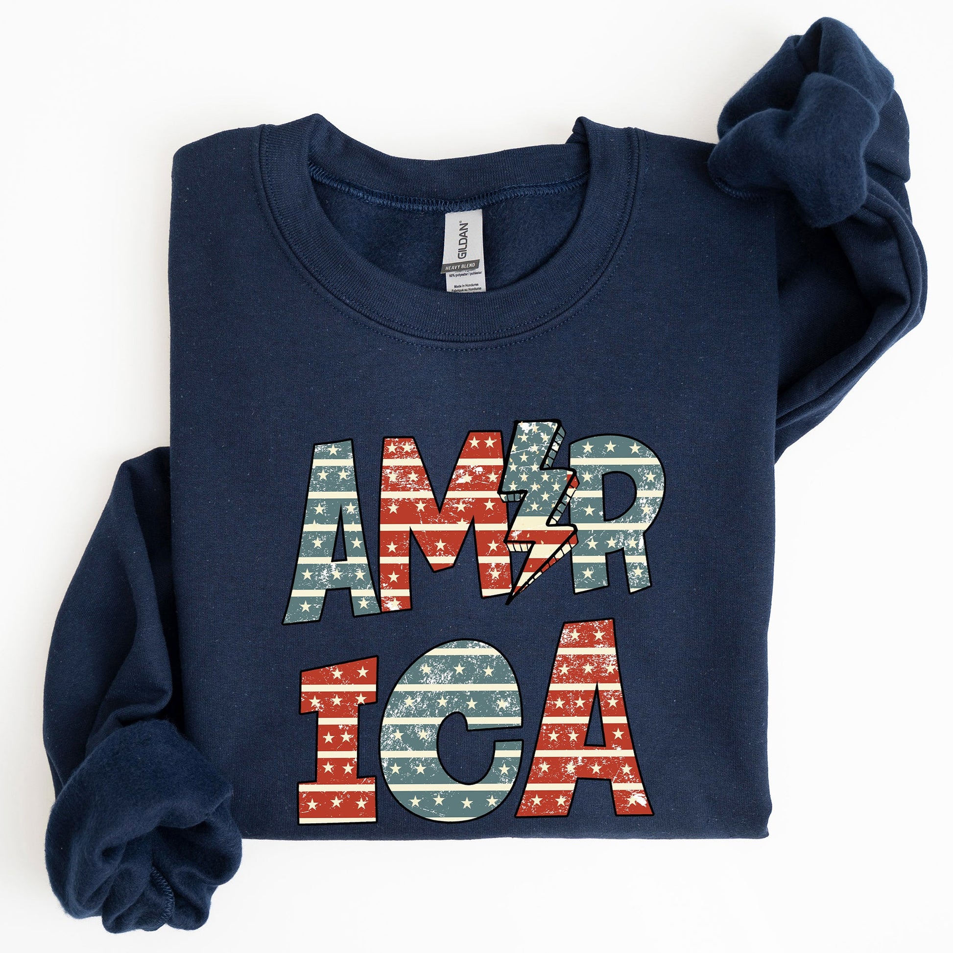 Pair this Retro America, Patriotic, 4th of July Sweatshirt with your favorite jeans for a relaxed yet trendy look. Layer it over a casual shirt for added style while showcasing your patriotic pride. Perfect for casual outings, barbecues, and cozy nights in, this sweatshirt is an essential addition to your wardrobe.