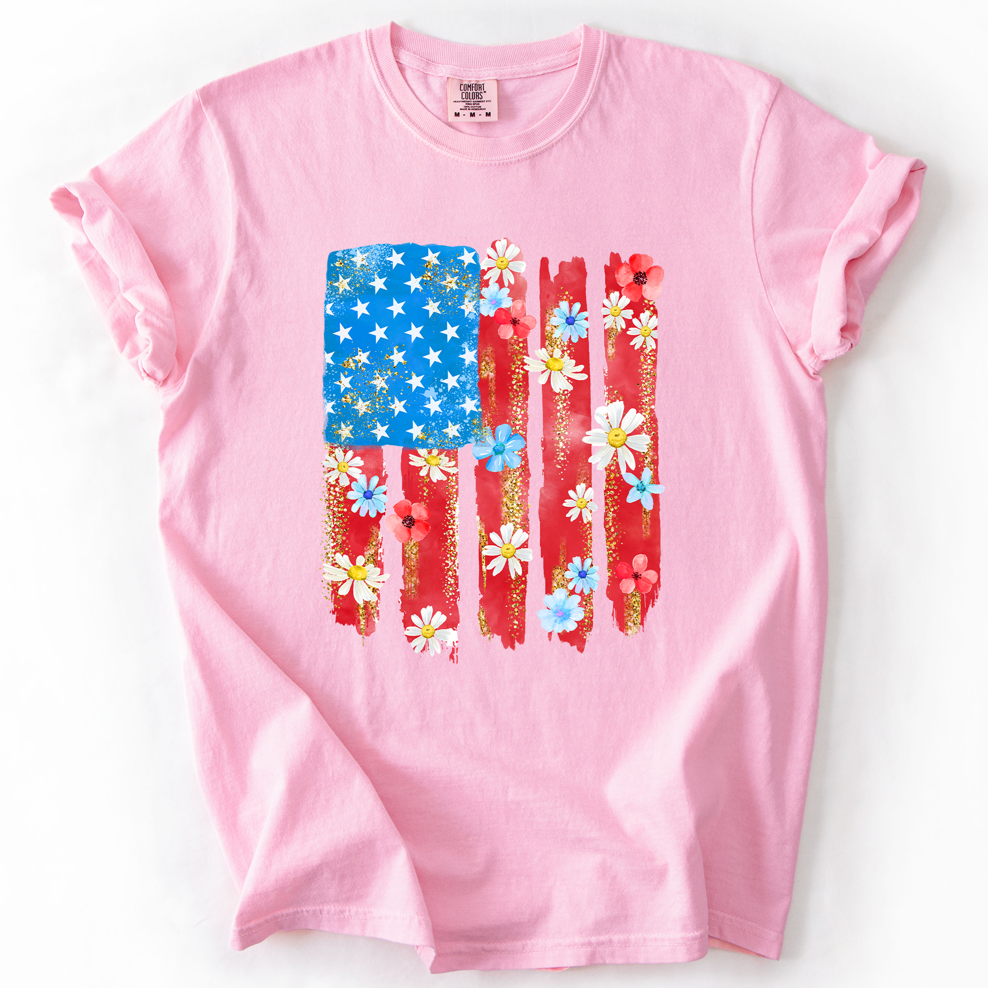 Retro Flower Flag, Fourth of July, America, Patriotic, USA, Comfort Colors T-Shirt