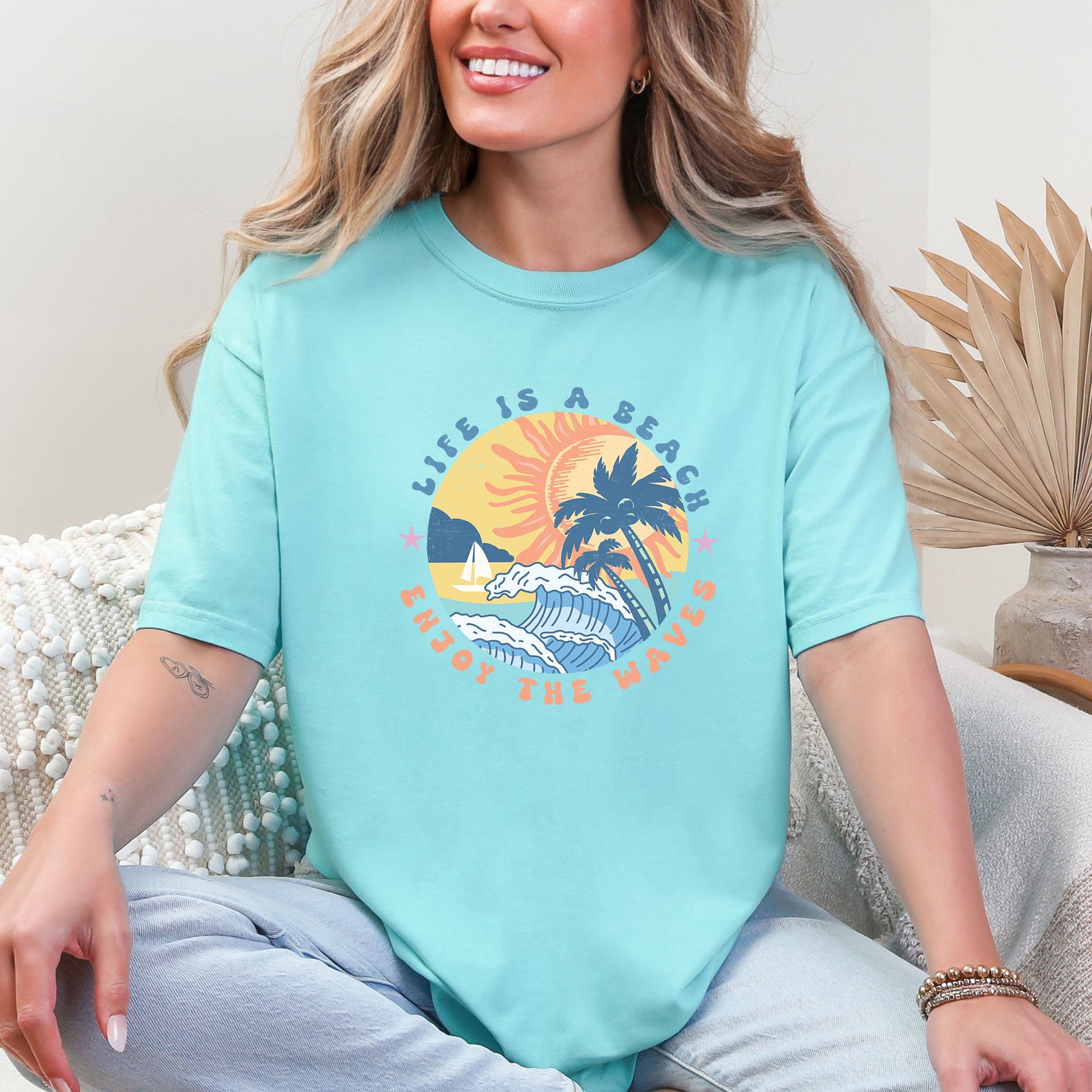 Embrace the carefree essence of summer with our Retro Life Is A Beach, Enjoy the Waves, Summer, Comfort Colors T-Shirt. Perfect for those who cherish sun-soaked days and ocean breezes, this T-shirt is more than just apparel; it's a statement of your love for summer adventures.